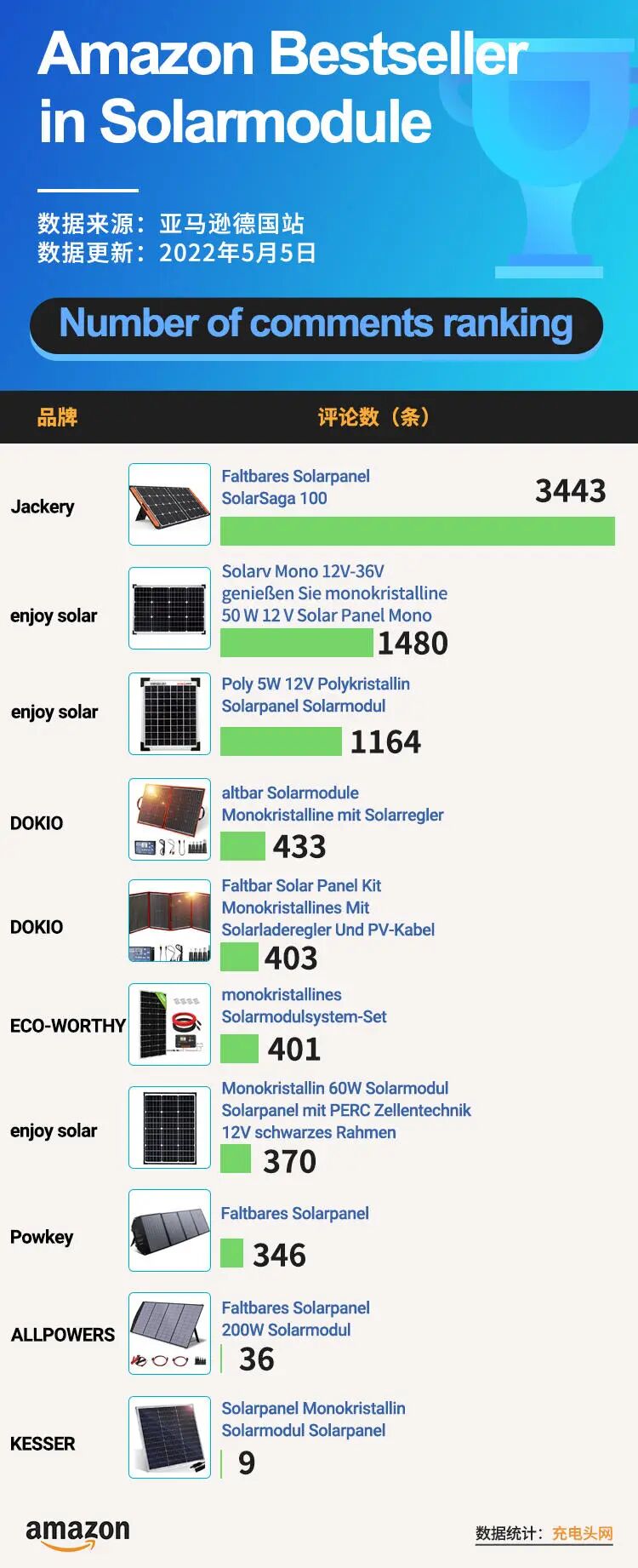 这些太阳能板从功率、售价以及评分等方面都不一样,充电头网通过分析帮助读者熟悉德国市场需求和产品布局,下面先来看一下每一款电源的详情介绍吧。
