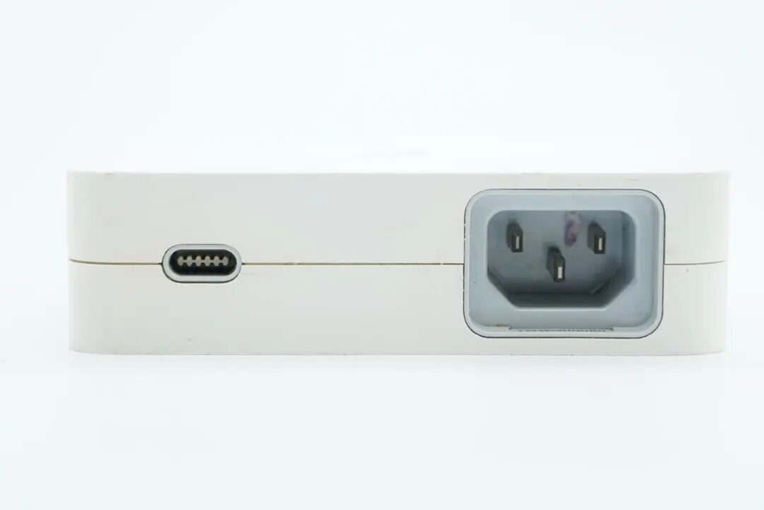 充电头网拿到了一款很古老的电源,这款电源是Apple Cinema HD Display(23英寸DVI)显示器的原配电源,型号为Cinema HD Display 90W Power Adapter,具备24.5V 3.7A输出,支持正反插,简直就是后来广泛应用的磁吸接口的雏形。