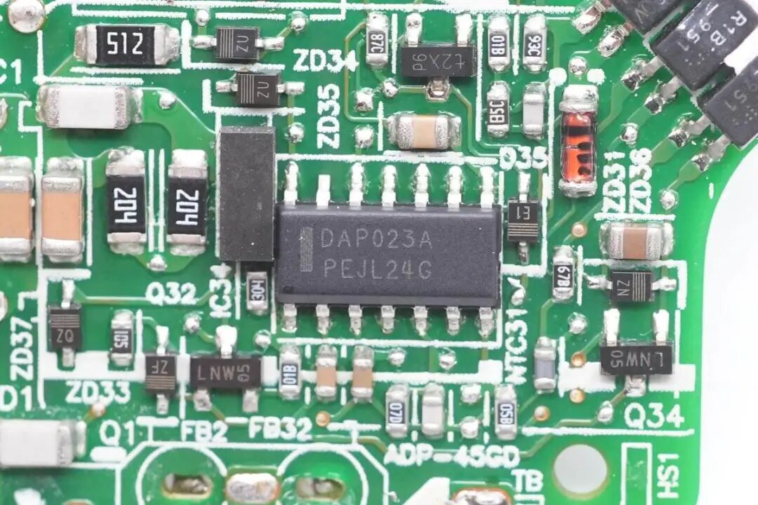开关电源初级芯片来自台达,丝印DAP023A,为台达定制型号。