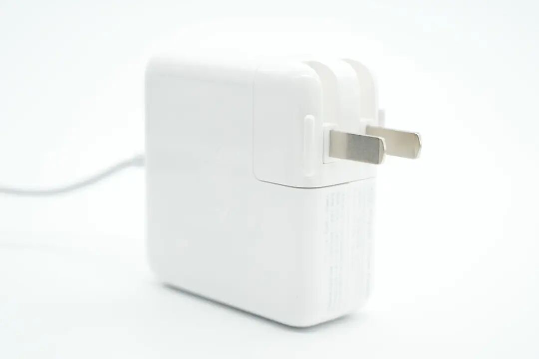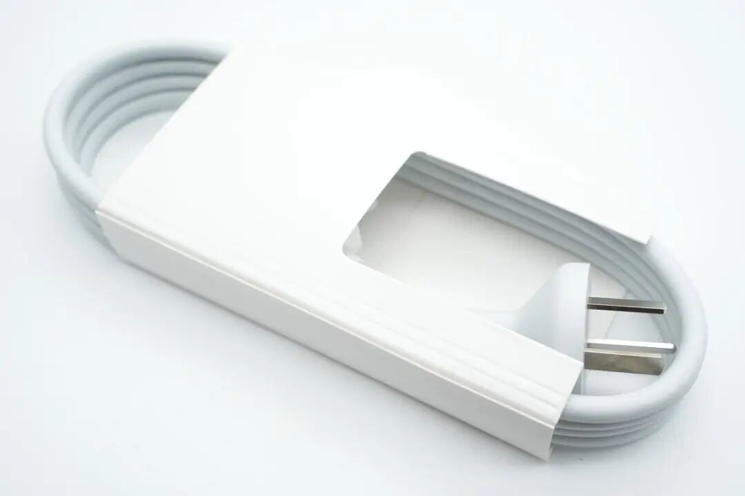 苹果这款45W充电器采用线缆与充电器一体设计,搭配专用磁吸插头,专为笔记本充电使用,充电器外壳上设有理线槽,方便收纳携带。包装内附赠了折叠插头和1.9米长延长线缆,充电器输出线长1.75米,可根据使用情况灵活选择,方便使用。