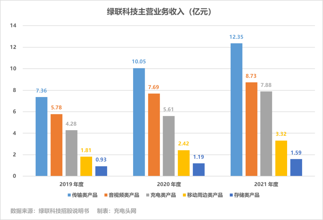 绿联科技主要产品为 3C 消费电子产品,主要涵盖传输类、音视频类、充电类、移动周边类、存储类五大系列。报告期内,随着绿联科技品牌影响力的不断提升,主要产品销量实现持续快速增长。