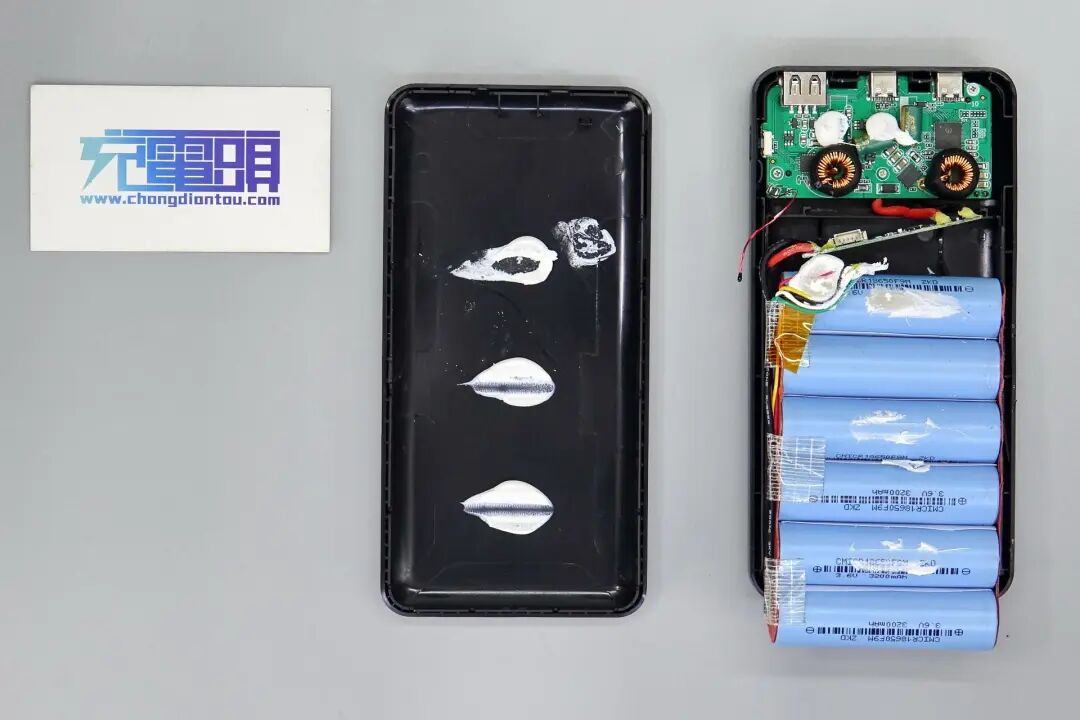 佳的美智能科技是一家集研发设计、生产制造、市场营销于一体的,以智能手机配件、个人智能数码、智能家居为主的集团化企业,致力于打造国际化,高科技型的领先品牌。产品包括移动电源、数码相框、智能早教机、充电器等产品。充电头网拿到了佳的美推出的一款100W 2C1A大功率双向快充移动电源,这款移动电源内置六串18650电芯,容量为3200mAh,总容量为19200mAh,具备100W+18W同时输出能力,能够同时为笔记本和手机快充,下面就对这款移动电源进行拆解,看看内部使用了什么方案吧。GADMEI 100W移动电源包装盒扁平,整体黑色基调风格十分简约。贴纸上印有产品参数以及商家信息,由中国人保财险承保产品责任险。包装内含充电宝、数据线以及使用说明书。充电宝采用PC材质黑色外壳,表面全部磨砂处理,正面印有GADMEI品牌。此外还设有LED电量指示灯,侧面设有电源键,端部设有2C1A三个USB接口,均为黑色胶芯。USB-C输入:5V3A、9V3A、12V3A、15V3A、20V3.25AUSB-C1:5V3A、9V3A、12V3A、15V3A、20V5AUSB-C1+(USB-C2+USB-A):100W+15W电池:21.6V/3200mAh(69.12Wh)此外PDO报文显示C1口还具备5V3A、9V3A、12V3A、15V3A、20V5A五组固定电压档位,以及3.3-11V3A、3.3-21V3A两组PPS电压档位。另外测得USB-C2口支持Apple 2.4A、Samsung 5V2A、DCP协议,以及QC2.0/3.0、FCP、SCP、VOOC/DASH/WARP、PE2.0快充协议。测得USB-A口支持QC2.0/3.0、FCP、SCP、VOOC/DASH/WARP、PE2.0快充协议。![]()