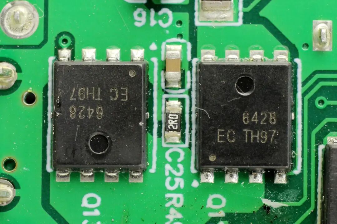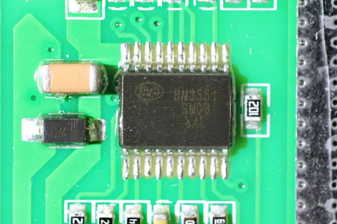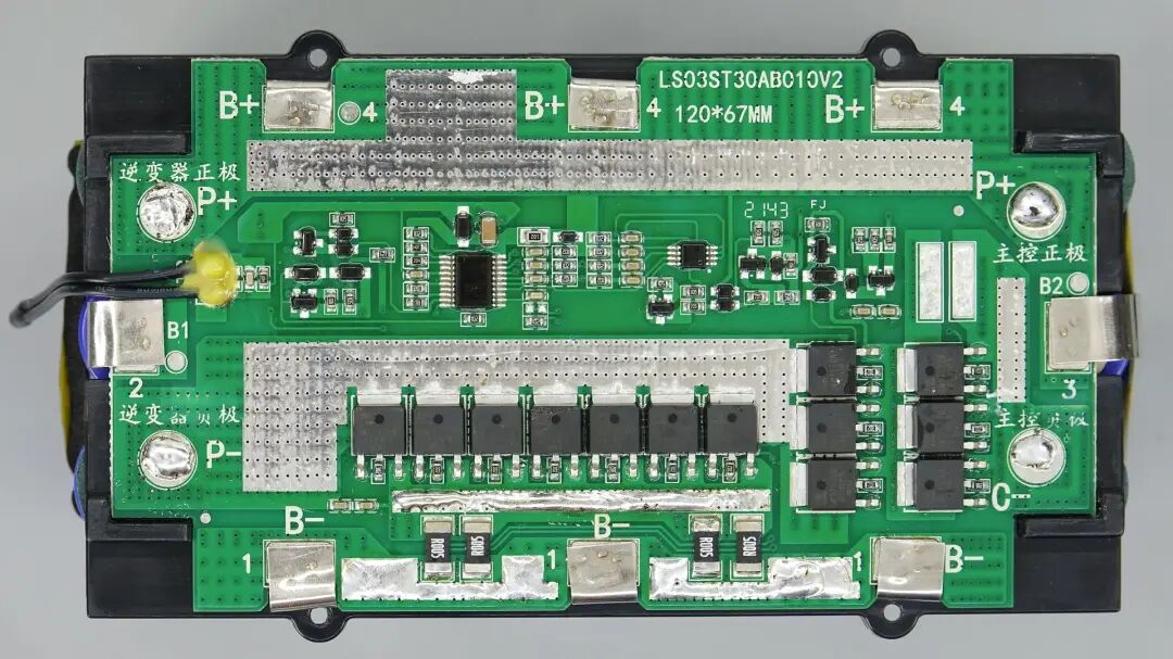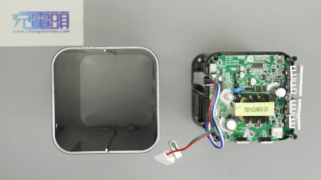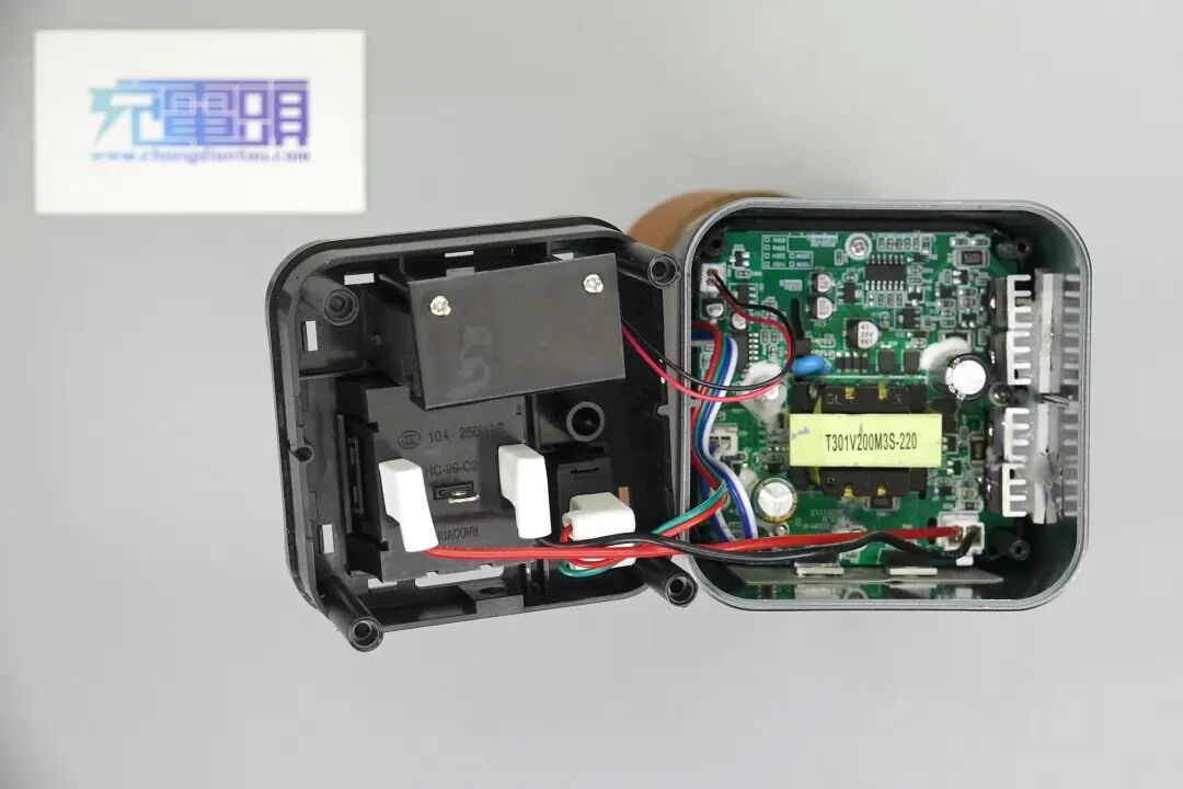同步升降压电池端上管来自冠禹,型号KS3214NAT,NMOS,耐压30V,导阻4.5mΩ,采用PDFN5060封装。另外三颗开关管丝印6428,组成H桥用于升降压电压转换。电池端滤波固态电容,来自瑞隆,规格为100μF 25V。逆变器输入端电流检测电阻,1毫欧取样电阻,2512封装。用于USB-A口自动识别的双路识别芯片,丝印A12X。LED照明灯驱动来自微盟,型号ME2215,是一颗降压LED驱动,内置开关管。逆变模块底部为直流升压开关管,右侧为输出交流调制部分,直流升压开关管通过壳体散热,交流输出调制开关管通过散热片和导热垫,通过壳体散热。模块中间位置为升压变压器。逆变模块背面直流走线大电流加锡,增加截面积,降低电阻。背面可以看到电路板上开有隔离槽,用于高低压隔离。直流输入滤波电容来自凯泽鑫,规格为2200μF 25V。两颗升压开关管来自华润微,型号为CS150N04A8,耐压40V,导阻3.6mΩ,采用TO220封装,使用绝缘垫通过壳体散热。低压MOS管驱动使用峰岹科技FD2024S双低端栅极驱动器,支持4-18V供电,兼容3.3/5V输入电平,支持欠压保护。变压器贴有信息标签,丝印T301V200M3S-220。逆变器使用四只二极管组成整流桥,用于将交流输出整流成脉动直流电,再通过一颗电解电容滤波,电解电容来自凯泽鑫,规格为47μF 400V。逆变器共使用四颗丝印FXN4613F的NMOS管用于输出调制。另外两颗FXN4613F,四颗组成H桥。两颗管子中间焊接一颗热敏电阻,并涂胶固定,用于温度检测。为逆变器控制电路供电的滤波电容,规格为47μF 25V。羽博EN2储能电源采用铝合金外壳,整体更加上档次,两个端面分别为交流逆变输出和PD快充面板,并在使用率更高的PD快充面板侧,增加皮质提手,方便使用。交流逆变支持200W输出功率,能够满足小家电的供电需求。PD支持65W双向快充,USB-A口支持18W快充,满足手机笔记本供电需求。充电头网通过拆解了解到,羽博EN2储能电源内置3串7并18650电池组。电池组保护板采用比亚迪BM3551配合赛微CW1051进行电池过充,过放,过流以及过热保护。PD快充模块使用英集芯IP5389多合一SOC芯片进行升降压控制和协议识别功能,并且支持多个USB接口输出。逆变器采用单独的模块设计,并配有散热风扇,初级滤波电容和高压电解电容均来自凯泽鑫,输出调制管和升压变压器都有热敏电阻检测温升,确保安全使用。储能电源内部采用模块化设计,工厂组装和维护都非常方便。