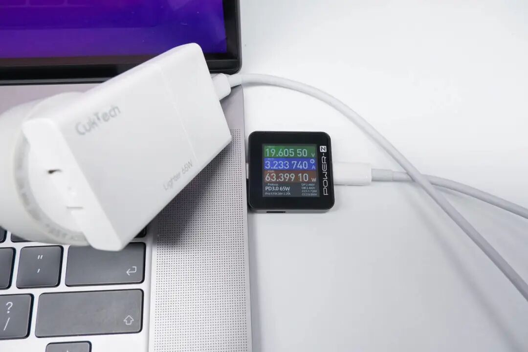 拿来充苹果MacBook,测得充电功率也有63.4W。