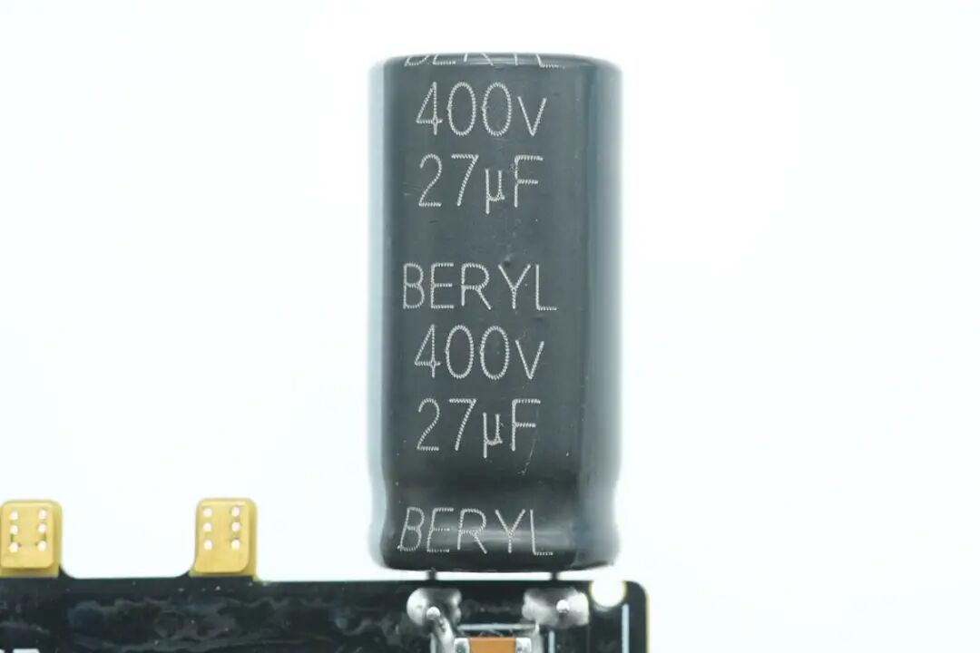 接着经过高压滤波电解电容滤波成直流电,两颗电解电容均来自BERYL绿宝石,规格都是400V 27μF。