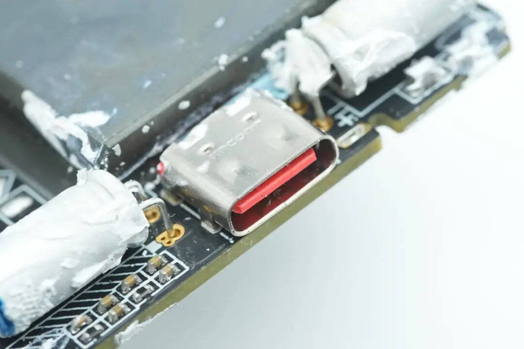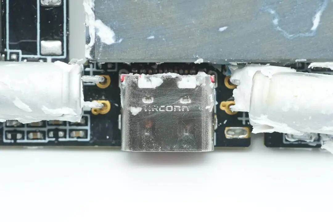 USB-C母座特写,过孔焊接。
