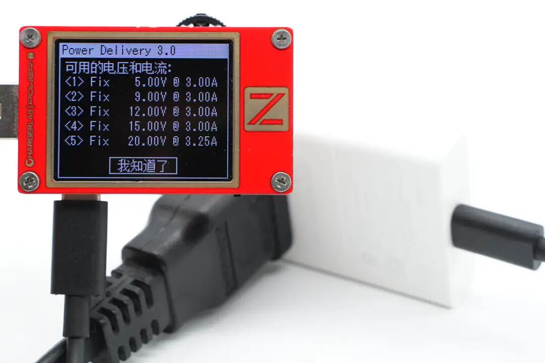 并且还具备5V3A、9V3A、12V3A、15V3A、20V3.25A五组固定电压档位。