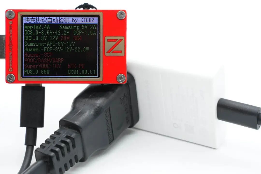 使用ChargerLAB POWER-Z KT002测得USB-C口支持Apple 2.4A、Samsung 5V2A、DCP协议,以及QC2.0/3.0、AFC、FCP、PD3.0快充协议。