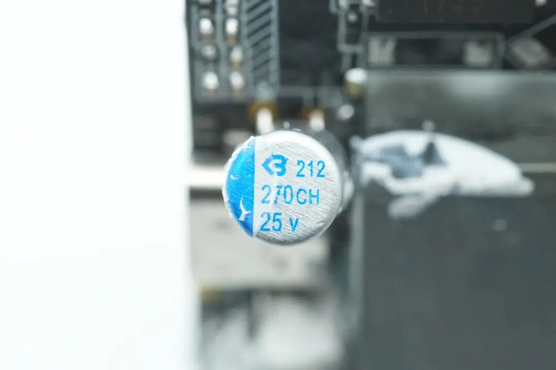 另一颗绿宝石电解电容特写,共计54μF容量。