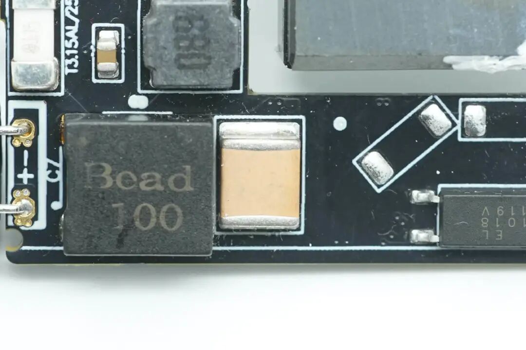 接通电源电流首先经过贴片保险丝,过流即熔断保护后级电路。保险丝来自贝特电子,额定电流3.15A。