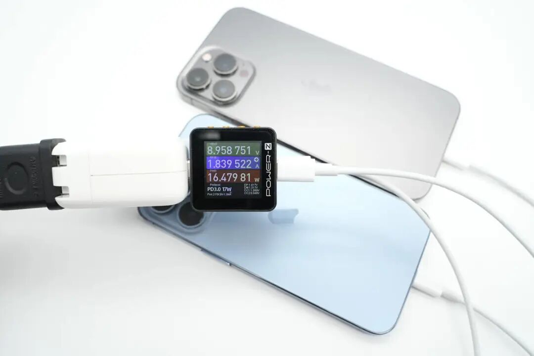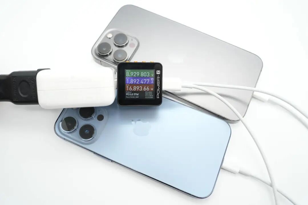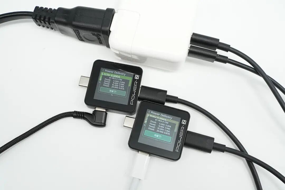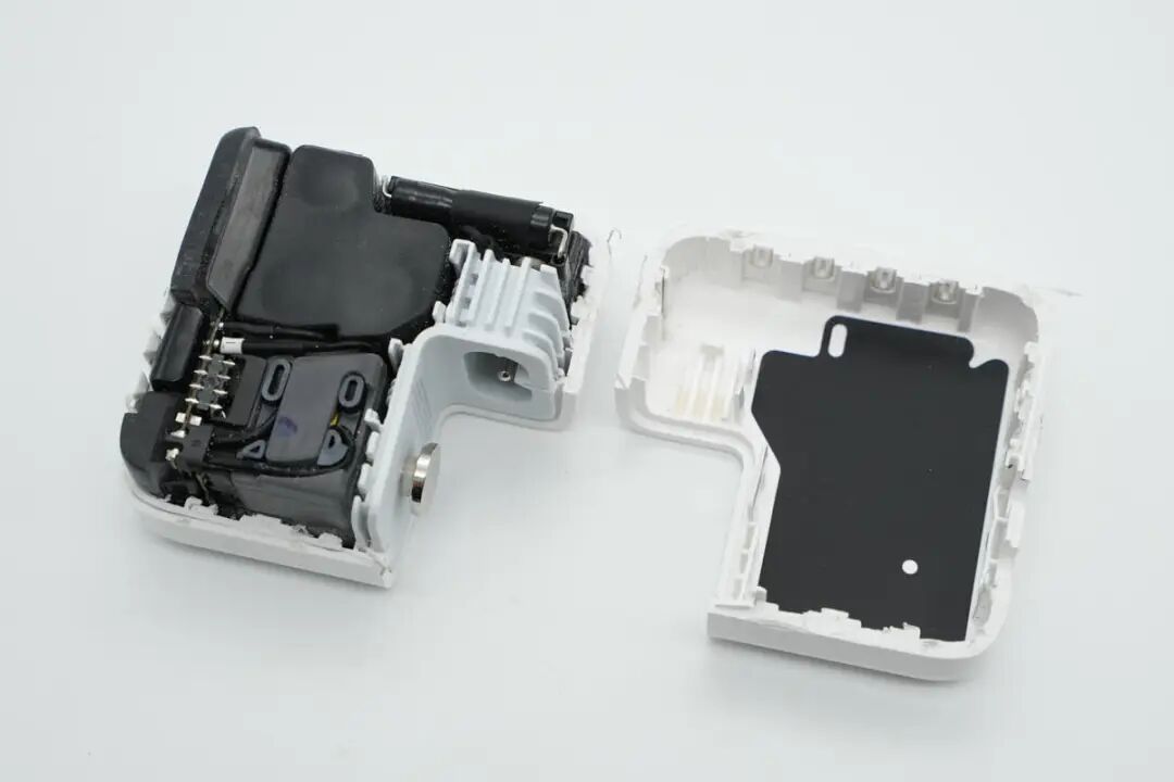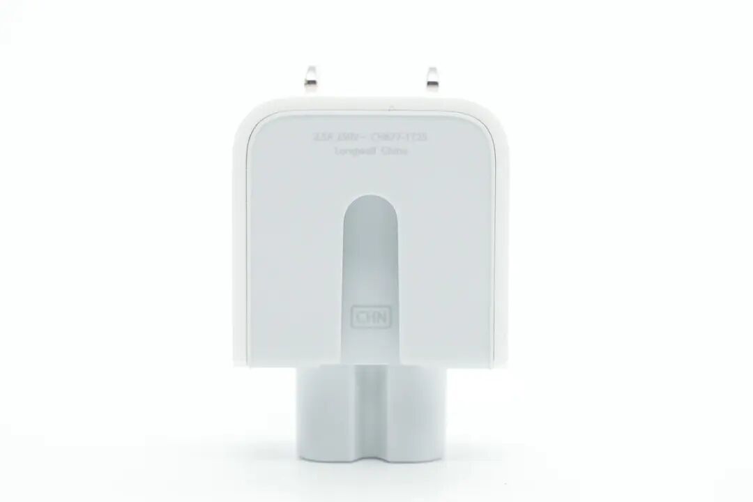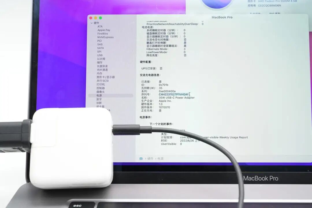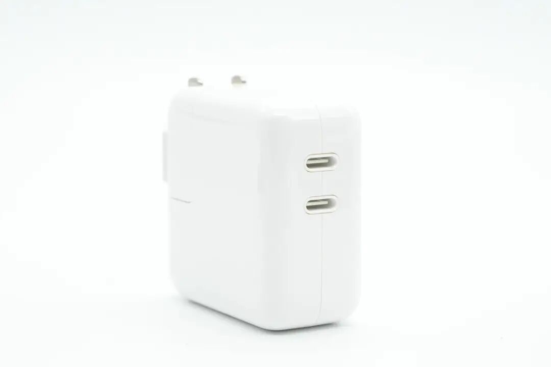 这款充电器采用了苹果充电器的家族设计,使用传统的可替换折叠插脚,也可以搭配延长线使用,无论是在家中还是在外面使用都更加方便,下面就对这款35W双口充电器进行拆解,看看内部是如何设计的。包装盒正面印有苹果logo、充电器名称以及外观图。另一侧贴有产品生产日期贴纸,中国制造,包装盒除了正面充电器外观图,其它设计都和之前拆的A2579的是一样的。苹果A2676充电器采用经典方块造型设计,白色亮面外壳,边角过渡圆润。插脚为可拆卸独立模块设计,两侧加入双翼提升使用稳定性。配备的是可折叠国标插脚,携带方便且不会刮伤包里其它设备。插脚模块拆下,机身上有T字型固定座帮助固定,此外还能起到接地作用(需要更换带接地插脚的电源线)。插脚模块外壳上印有2.5A 250V~规格、Longwell(良维)制造商以及CHN字样。PD输出1或2:5V3A、9V3A、15V2.33A、20V1.75A充电器已经通过了CCC、KC认证,以及VI级能效认证。PDO报文显示C1口具备5V3A、9V3A、15V2.33A、20V1.75A四组固定电压档位。PDO报文也完全一样,两个USB-C接口单口输出性能完全一致。双口同时输出,测得两个接口PDO报文都是5V3A、9V1.94A、15V1.16A、20V0.87A四组固定电压档位。使用苹果MacBook Pro读取得充电器序列号为C4H2237027P1VHGAY。使用这款充电器给苹果MacBook充电,测得充电功率为19.95V 1.68A 33.46W。拿来给苹果iPhone 13 Pro Max充电,测得充电功率为8.94V 2.93A 26.18W。拿来同时充苹果iPhone 13 Pro以及iPhone 13 Pro Max两部手机,测得功率都在16.5W左右,支持功率智能分配。使用充电器同时充苹果手机和耳机,测得耳机充电功率约为1.7W。iPhone 13 Pro Max手机的充电功率约为26.05W。