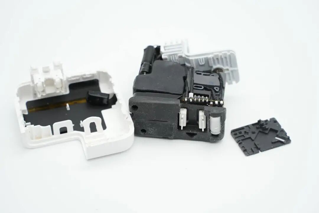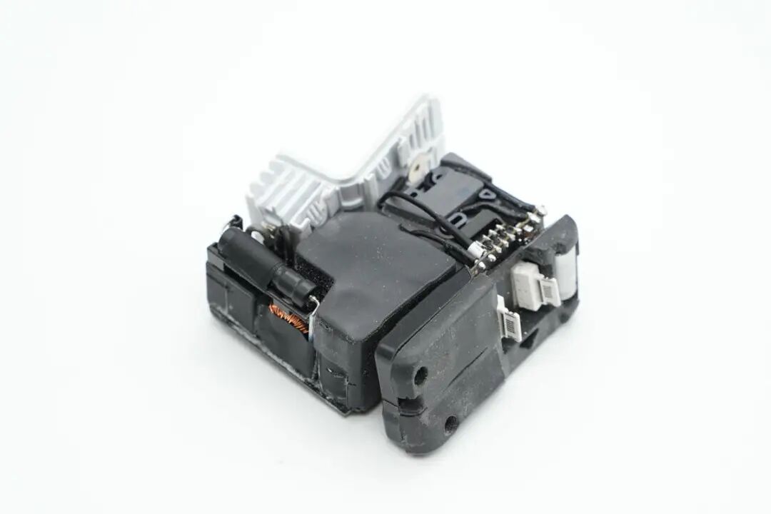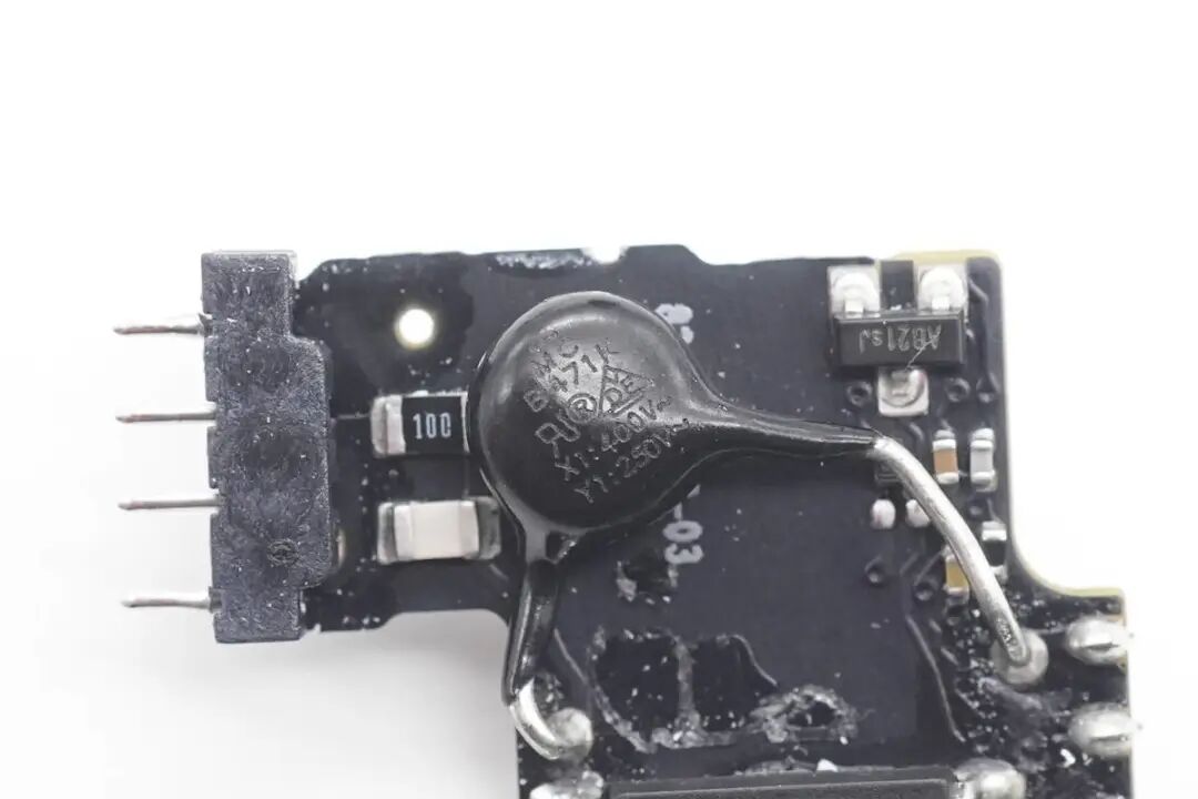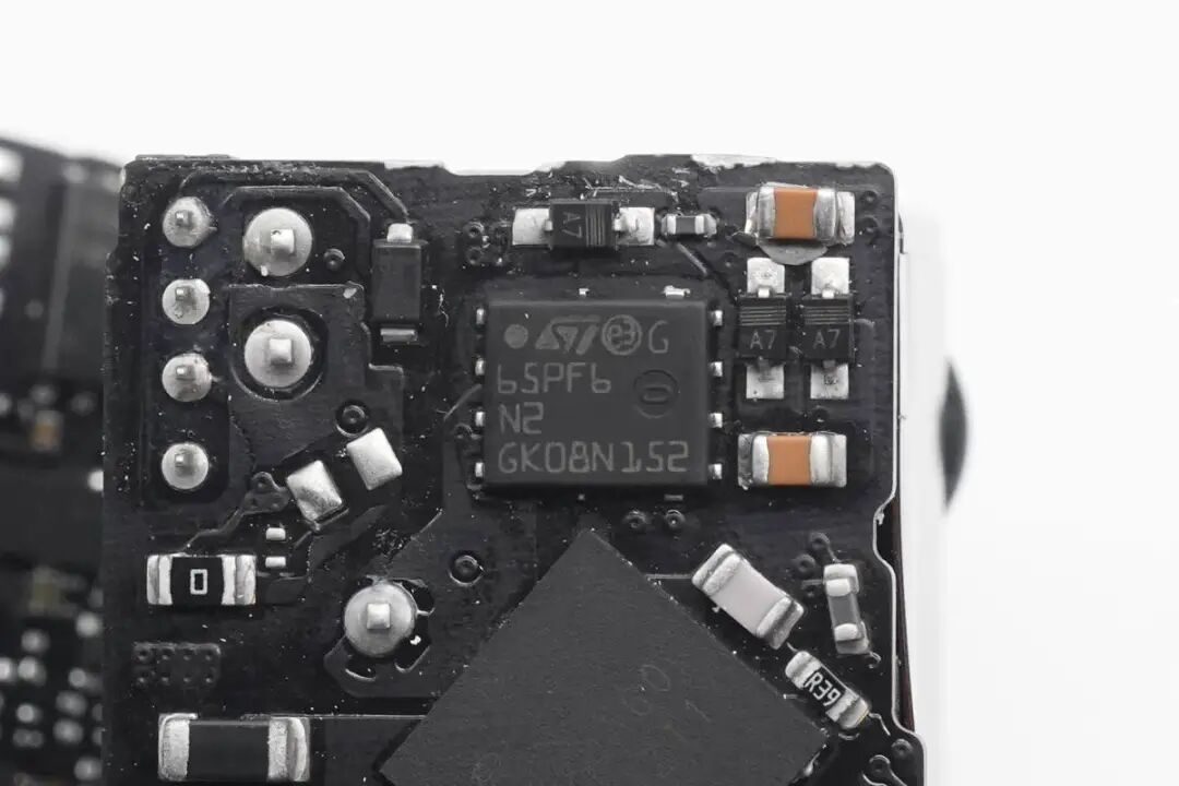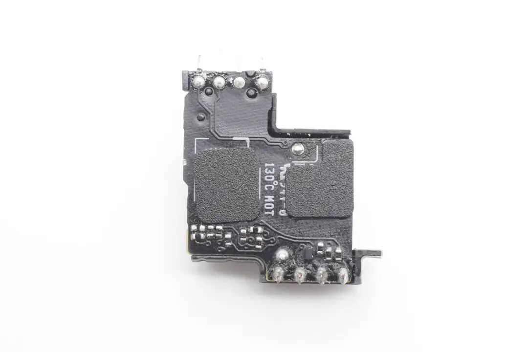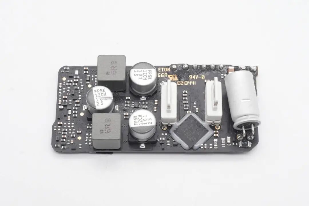 看完这款充电器的开箱和测试后,下面就进行拆解,一起看看内部是如何设计的。充电器内部电容,PCB板均使用导热硅胶罩覆盖,填充内部空间。从外壳内部取出PCBA模块,PCBA模块底部也有契合形状的硅胶垫填充。PCBA模块分为AC电源部分和DC降压部分,其中DC降压模块采用单独的塑料壳绝缘。使用游标卡尺测得PCBA模块长度约为49.19mm。电源输入采用导线冷压端子,外套热缩管保护,焊接连接到PCBA模块上。接地线采用螺丝固定在T型固定端子上,搭配三相延长线使用可以将充电器接地,防止出现麻手的情况。T型固定端子采用螺丝固定接地线,另一端焊接在DC降压模块上。PCBA模块正面一览,苹果这款35W双口充电器采用二次降压的电路设计,变压器输出直接焊接到降压小板上,小板上进行同步整流滤波后为降压电路供电。取下充电器PCBA模块上覆盖的硅胶罩和绝缘罩,进行详细拆解。通过对充电器的观察,苹果这款35W双口充电器采用开关电源搭配两路降压电路的方式,由协议芯片控制降压芯片输出电压,满足双口同时快充输出的设计方式。变压器次级输出直接连接到输出小板上,由小板进行同步整流并降压输出。充电器交流输入端一览,输入端保险丝固定在支架上方,左侧是安规X2电容,右侧是共模电感,立体布置,充分利用内部空间。保险丝使用胶带固定在绝缘支架上,安规X2电容在支架左侧的空间内,右侧是一颗共模电感,使用红色和铜色漆包线绕制在磁环上,并缠绕胶带绝缘。输入端整流桥来自光宝,丝印RTT10KL,将交流电整流成脉动直流电。三颗高压滤波电容来自丰宾,规格为22μF 400V,共计66μF容量。差模电感采用工字磁芯,配合三颗电解电容,将整流桥输出的脉动直流电滤波成为直流电为开关电源供电。电解电容和差模电感采用一个一体式硅胶罩分体绝缘,差模电感没有外套热缩管和缠绕胶带绝缘。拆掉AC电源PCBA模块正面的插件元件,正面焊接一颗主控芯片和一颗开关管。丝印5001的互感器,用于初级电流检测,消除了传统取样电阻带来的功率损耗。初级开关管来自AOS万代,丝印180A60,实际型号为AONV180A60,是一颗耐压700V的NMOS,导阻160mΩ,采用DFN8*8封装。为初级主控芯片供电的电解电容,规格为35V 47μF。紧贴着变压器焊接一块小板用于输出电压反馈。小板下方焊接连接输出小板,背面固定一块绝缘塑料罩。输出降压小板焊接两颗电感和滤波电容,分别对应两路同步降压电路用于降压输出。外壳内部贴有一片铜箔,铜箔通过PCB上粘贴的导电布接地。小板正面焊接两路降压电感,两个USB-C母座以及一颗协议芯片,四颗固态电容用于输入和输出滤波。小板背面左侧焊接同步整流管,中间是两颗VBUS开关管,右侧两颗双MOS管用于同步降压,最右侧两颗为同步降压控制器,由协议芯片控制调节输出电压。同步整流管来自英飞凌,丝印093N15NS,实际型号为BSC093N15NS5,是一颗耐压150V的NMOS,导阻为9.3mΩ,采用SuperSO8封装。滤波电容来自尼吉康,FP系列固态电容,270μF 25V。协议芯片来自英飞凌,型号CYPD4236-LQXQT,属于EZ-PD CCG4系列,是一款支持双口快充应用的协议芯片,提供两个完整的USB PD接口应用,可用于笔记本,适配器和扩展坞应用。EZ-PD CCG4采用赛普拉斯专有的M0S8技术,内置32位 ARM M0处理器,具有128KB闪存和8KB内存,采用6*6mm 40pin QFN封装,焊盘边缘打白色硬胶加固。同步降压控制器来自MPS,型号MP9928,是一颗支持60V输入的电流模式同步降压控制器,内部集成半桥NMOS驱动器,工作频率100kHz-1MHz可编程,支持相位翻转输出,支持逐周期过流保护,具备输出过电压保护功能和高精度过热保护功能。两颗MP9928同步降压控制器分别用于两个接口的降压输出。同步降压开关管来自安森美,型号FDMC007N30D,是一颗双NMOS管,非对称结构,内部为半桥连接,适合于同步降压应用。内部两个MOS管耐压均为30V,降压上管导阻为11.6mΩ,下管导阻为6.4mΩ。用于同步整流输入滤波的固态电容,尼吉康FP5K系列,规格为100μF 25V。两颗输出VBUS开关管来自AOS万代,型号为AON7428,是一颗耐压30V的NMOS,导阻2.3mΩ,采用DFN3.3*3.3封装。输出USB-C母座特写,配合外壳结构组成完整的USB-C母座。苹果新推出的35W双口充电器采用传统的家族式设计,体积与30W充电器相当。充电器单口支持35W功率输出,并且支持功率自动分配,满足手机和笔记本电脑同时充电需求。USB-C口具备5V3A、9V3A、15V2.33A、20V1.75A四组固定电压档位,在接入第二个设备时,先前接入的设备不会断电,改进了用户体验。充电头网通过拆解了解到,这款35W双口内部采用多个塑料件和硅胶罩进行绝缘,在起到绝缘保护的同时,将热量传导至外壳散发,提升充电器的散热性能。充电器内部采用苹果定制APSLC01主控芯片,搭配ST和AOS开关管组成开关电源。变压器输出经过同步整流,由英飞凌CYPD4236控制两路MP9928进行同步整流降压,同步降压管来自安森美,非对称结构更加适合降压应用。充电器初级滤波电容来自丰宾,输出固态电容来自尼吉康,整机用料均为业内一线品牌,充电器的设计和用料都非常给力。2022亚洲户外电源大会