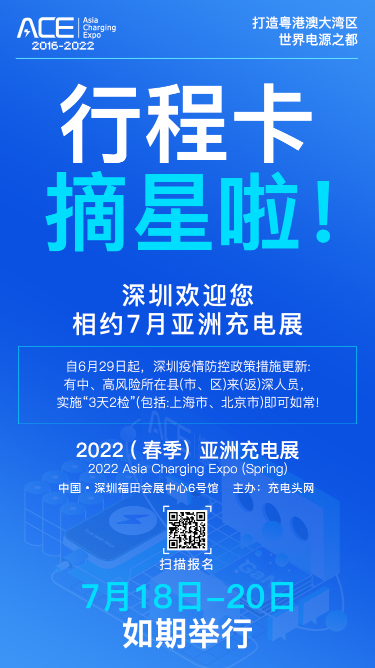 随着疫情防控形势的好转,2022亚洲充电展将如期举办,举办时间为7月18日-20日(周一到周三),地点在深圳福田会展中心6号馆,届时欢迎大家参观!