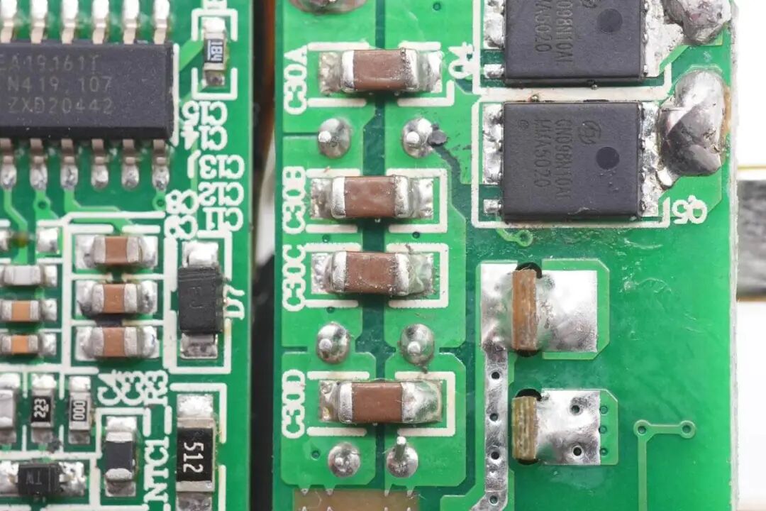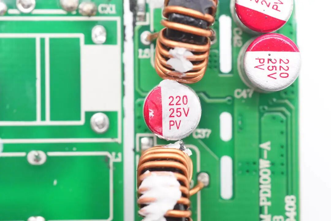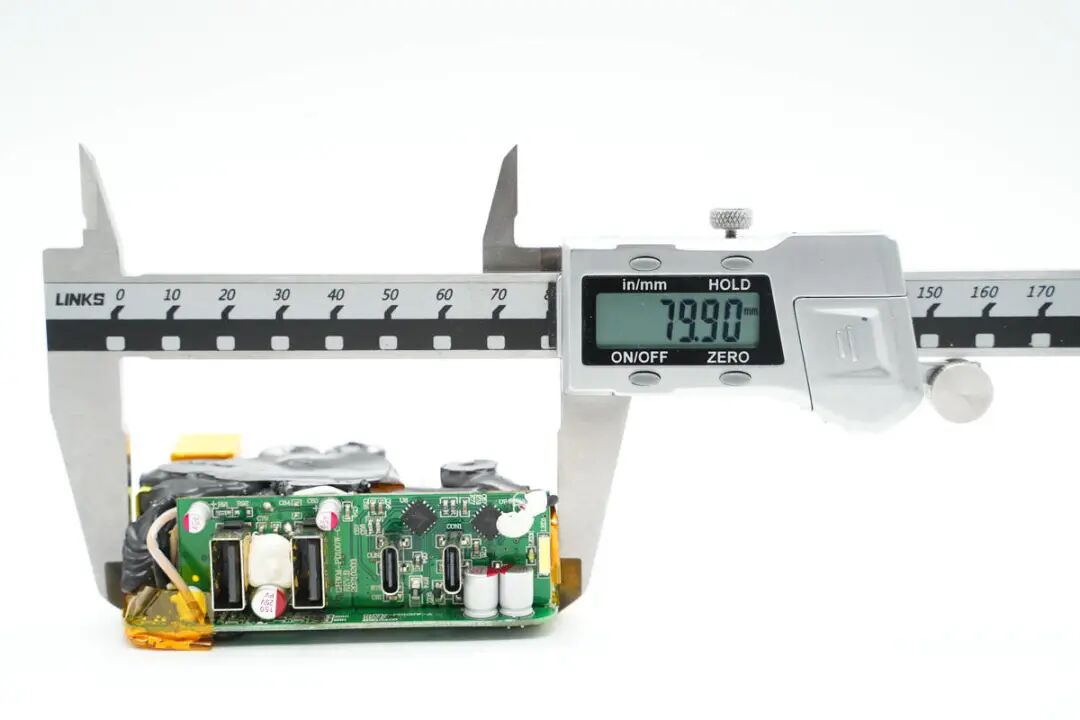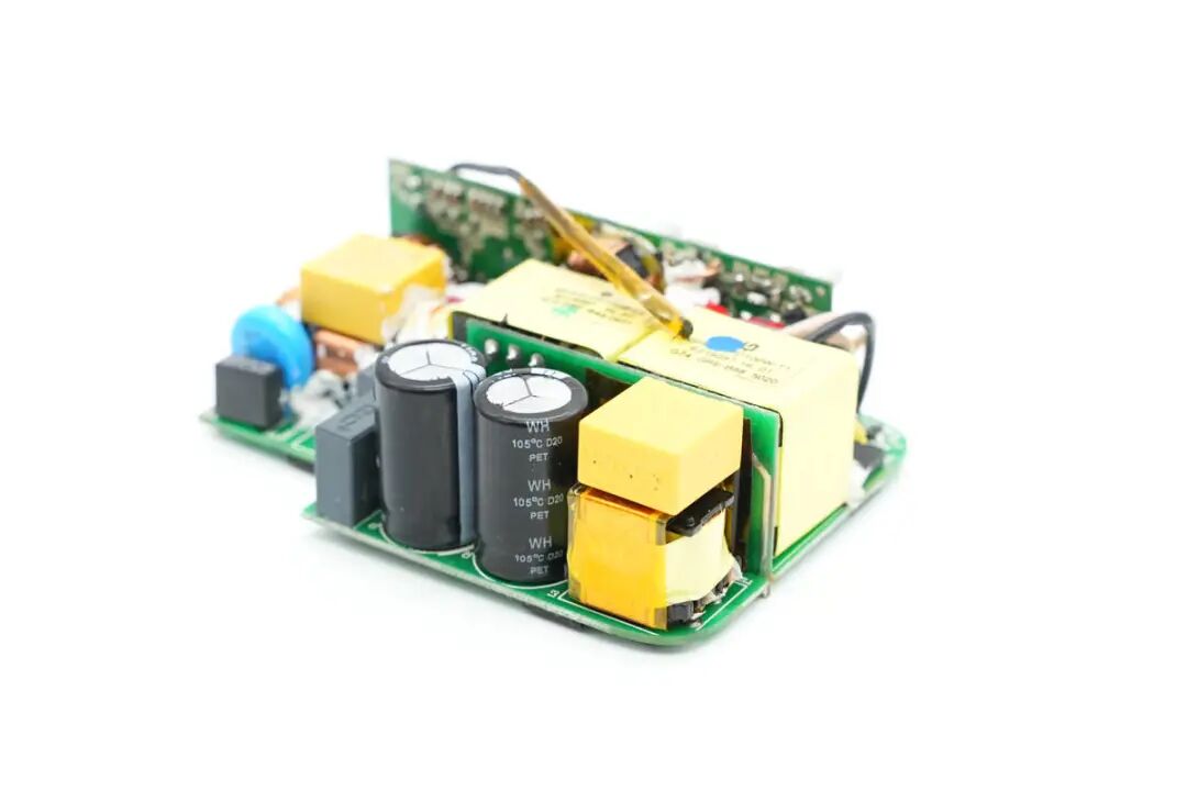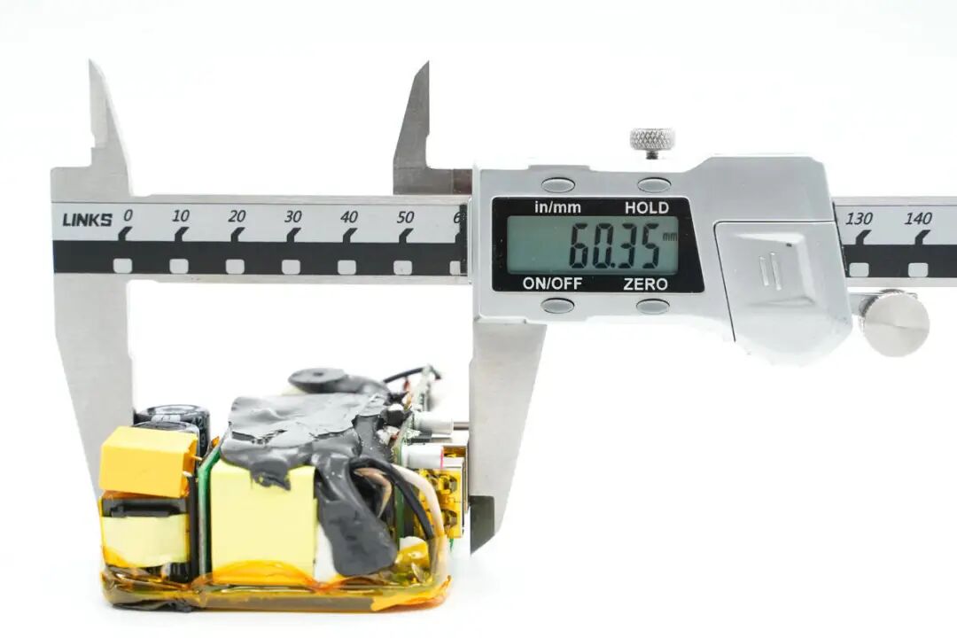 包装盒正面贴纸印有InfinityLAB品牌、充电器外观图、名称以及插脚标识。插脚一侧中心区域为黄色外壳,并印有InfinityLAB品牌logo。充电器正背面外壳以及侧身外壳均为灰色,一浅一淡,表面磨砂抗指纹。USB-C1/C2输出:5V3A、9V3A、12V3A、15V3A、20V5A充电器已经通过了EAC、UKCA、TUV、CE认证,以及VI级能效认证。输出端设有2A2C四个USB接口已经LED指示灯。测得另一个USB-A口也只支持Apple2.4A协议。并且具备5V3A、9V3A、12V3A、15V3A、20V5A五组固定电压档位。测得另一个USB-C口也只支持PD3.0快充协议。PDO报文相同,两个C口支持功率盲插,日常使用方便看完了这款充电器的开箱和性能测试后,下面就进行拆解,看看内部设计和用料如何。撬开超声波焊接的盖子,铝制散热片下面覆盖绝缘麦拉片,用于为PCBA模块散热。充电器内部变压器,电解电容等元件涂有导热胶通过外壳内部的散热片散热。电源输入插座为独立的模块,通过导线焊接,外套热缩管绝缘。拆下PCBA模块,PCBA模块边缘包裹高温胶带绝缘。使用游标卡尺测得PCBA模块长度约为79.9mm。PCBA模块由输出小板和主板焊接组成,输出小板焊接输出母座和二次降压电路。PCBA模块正面一览,其中右侧为二次降压电路,左侧为高压滤波电容,LLC谐振电感和谐振电容,正中为PFC升压电感,底部为LLC变压器。PCBA模块背面顶部焊接两颗整流桥,左侧上方是两颗同步降压转换器,左下角是两颗同步整流管。右侧为PFC升压控制器,升压开关管和整流管,LLC控制器和开关管。低压与高压元件之间开槽插入麦拉片绝缘。通过对充电器PCBA模块的观察发现,这款100W充电器采用PFC+LLC开关电源架构,同步整流,固定电压输出,两个USB-C接口使用独立的降压电路由协议芯片控制输出,两个USB-A口使用一路降压电路,固定5V输出。下面我们就从输入端开始了解整个充电器的设计和用料。充电器输入端特写,焊接保险丝,压敏电阻,共模电感,X2安规电容等元件。蓝色压敏电阻来自STE松田电子,规格为10D511K,用于输入过压保护。两颗整流桥来自PY平伟,型号为TBMR610,两颗采用半桥连接,并联使用均摊发热,降低温升。整流输出通过两颗薄膜电容和磁环电感组成的滤波电路为PFC电路供电,两颗薄膜电容均为0.47μF 450V。PFC控制器采用NXP恩智浦TEA19162,用于将整流后的电压升压,进行主动功率因数校正,内部集成X电容放电元件,无需外部元件,集成软启动和关断,支持高精度稳压升压,并且内置多重完善的保护功能。PFC开关管来自GaN Systems,丝印GS6511-1L,实际型号为GS-065-011-1-L,是一颗耐压650V,瞬态耐压为850V的增强型氮化镓开关管,导阻为150mΩ,采用PDFN5*6封装,支持1MHz以上的超高开关频率。器件在设计时简化了驱动要求,栅极驱动电压为0-6V,瞬态耐压为-20至+10V,具有更强的可靠性。器件具备开尔文源极,可用于优化栅极驱动。