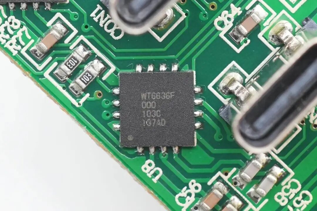 用于检测PFC开关管电流的取样电阻,采用2512封装,阻值为150mΩ,在上方还并联一颗1206封装的500mΩ电阻。PFC升压电感和LLC变压器焊接在同一块小板上,顶部标签上分别标注L2和T1。主板侧面焊接高压滤波电容,LLC谐振电感和谐振电容。两颗高压电容来自JSH万京源,规格为420V 39μF,两颗并联用于PFC输出滤波。主控芯片TEA19161T为LLC控制器,与TEA19162组成带PFC的半桥谐振开关电源,用于提高电源转换效率。TEA19161T是一颗全数字控制的高效率LLC控制器,内部集成高压启动,集成高压驱动器,内部集成软启动,最高工作频率达500kHz,可在全负载范围内提供搞转换效率,并具有极低的待机功耗。两颗LLC开关管来自SemiHow,型号为HCFL65R210,为耐压650V的超结NMOS,导阻为200mΩ,采用DFN8*8封装。LLC谐振电容规格为0.022μF,耐压630V。用于为TEA19162和TEA19161T两颗控制器供电的滤波电容,规格为35V 47μF。贴片Y电容来自四川特锐祥科技股份有限公司,具有体积小、重量轻等特色,非常适合应用于氮化镓快充这类高密度电源产品中。料号为TMY1102M。特锐祥专注于被动元器件的研发、生产及销售,注册资本1亿元。旗下有自主电容品牌两类:SMD TRX及DIP TY电容器,TRX将致力于陶瓷材料的研究,以拓展更多品类的应用,为客户提供更多的解决方案。两颗同步整流管来自恒泰柯,型号为HGN098N10AL,是一颗耐压100V的NMOS,导阻为8mΩ,采用DFN5*6封装。拆下主板上的插件元器件,次级侧焊接同步整流控制器,滤波固态电容,电感以及用于两个USB-C口的降压电感和滤波电容。次级同步整流控制器采用恩智浦TEA1995T,其内置两个驱动器用于LLC架构开关电源的同步整流,支持4.5-38V输出电压,并适用于多模式反激同步整流应用,外围元件精简。两颗固态滤波电容来自JSH万京源,PZ系列充电器专用产品,规格为820μF 25V。输出滤波采用四颗1206封装的MLCC与固态电容并联滤波。滤波电感后面还有一颗滤波电容,规格为220μF 25V。焊接USB-A和USB-C母座的小板上还焊接了两颗协议芯片,降压开关管和滤波电容。右上角焊接热敏电阻,用于检测变压器温度,检测到过热时关闭输出,进行过热保护。右侧为两颗LED指示灯,用于电源和工作状态指示。小板背面焊接一颗降压电感,用于两个USB-A口5V输出。USB PD协议IC采用伟诠WT6636F,这是一颗通过USB-IF协会USB PD3.0(PPS)认证的协议芯片(TID号:1080018),另外通过了高通QC4+认证,认证号QC20200316138。WT6636F支持USB PD3.0和PPS,内置可编程的恒压恒流控制,集成低侧电流采样放大器,支持线损补偿,支持多重保护功能,包括数据脚的过压保护,内部集成10bit ADC用于电压和电流检测,内置8051内核单片机,内置放电MOS管。两个USB-C口输出协议芯片均为伟诠WT6636F,两颗芯片相互通信,实现双口盲插100W输出以及输出功率智能分配功能。USB-C口输出采用拓尔微 TMI2286D同步降压转换器,用于降压输出。TMI2286D是一颗耐压30V的同步降压转换器,内置开关管,支持内部环路补偿,支持输出线损补偿,内部集成软启动和过热关断,支持100%占空比,采用SOP8封装。TMI2286D外接一颗MOS管用于减小输出压降,来自恒泰柯,型号为HTM200P03,是一颗耐压30V的PMOS,导阻为20mΩ,DFN3*3封装。用于另外一路的两颗滤波电容,分别用于输入滤波和输出滤波,规格均为220μF 25V。VBUS开关管来自方舟微,丝印30N5P0S,实际型号为AKF30N5P0S,是一颗耐压30V的NMOS,导阻为4.2mΩ,采用PDFN3333封装。用于两路USB-A口的降压控制器来自南芯,型号为SC8002,南芯SC8002支持36V输入电压,支持高精度输出限流,支持双通道独立限流。SC8002可用于车充,多口充电器,USB HUB等应用。两颗同步降压开关管焊接在两个USB-A口之间,来自华羿微,型号HY1503C1,是一颗耐压30V的NMOS,导阻为7.1mΩ,采用DFN3*3封装。降压磁环电感双线并绕,底部垫有绝缘板与PCB绝缘,打胶固定。两个USB-A口使用赛微CW3005F双路自动识别芯片,支持苹果2.4A协议。用于检测USB-A接口输出电流的取样电阻和LM321运放,放大检测到的电流信号送至协议芯片用于输出功率分配控制。用于USB-A口输出的滤波电容,规格为150μF 6.3V。检测变压器温度的热敏电阻特写,外套热缩管并缠绕高温胶带绝缘。USB-C1母座特写,垂直过孔焊接固定,黑色胶芯不露铜。USB-A母座过孔焊接固定,外壳缠绕高温胶带绝缘。InfinityLab推出的这款100W四口充电器附带美标,欧标和英标插头,免去了购买插脚转换器的麻烦。充电器具备两个支持100W输出的USB-C接口和两个5V输出的USB-A插孔,满足笔记本,手机以及传统老式设备的充电需求。充电头网通过拆解了解到,这款充电器采用PFC+LLC开关电源架构,使用TEA19162+TEA19161T+TEA1995全套NXP恩智浦电源解决方案。内部使用GaN Systems的GS-065-011-1-L 增强型氮化镓器件用于PFC升压,LLC开关管使用两颗SemiHow HCFL65R210 超结MOS管,搭配同步整流输出固定电压为降压电路供电。降压电路中,USB-C口采用伟诠WT6636F协议芯片搭配拓尔微TMI2286D进行降压输出,两个USB-A口采用南芯SC8002同步降压控制器搭配华羿微MOS管,固定5V输出。充电器内部配有热敏电阻进行过热保护,高压电解电容和固态电容来自万京源,PCB双面均有麦拉片和铝片进行散热,内部结构紧凑,用料可靠。![]()