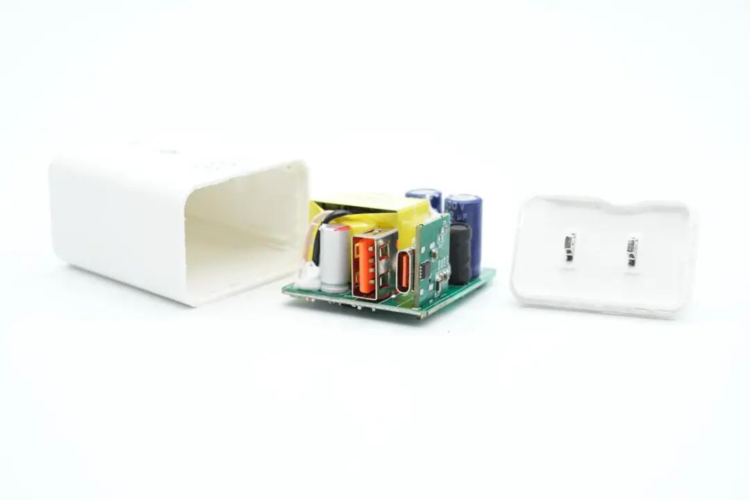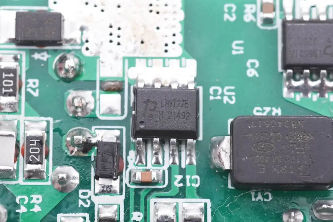 辉越光电推出了一款30W PD快充,这款充电器具备1A1C双接口,能够满足手机,笔记本电脑以及老式设备的充电需求,一头多用,相比单口充电器对消费者来说更有吸引力。这款充电器采用白色外观设计,美标直插插头,协议支持全面。内置了力生美的高集成快充电源方案,整体体积小巧。下面充电头网就对辉越光电这款30W双口充电器进行详细拆解,看看内部用料和做工如何。充电器采用直板造型设计,PC材质白色外壳表面磨砂处理。机身正面印有品牌联名logo以及30W超级快充字样。USB-C输出:5V3A、9V3A、12V2.5A、15V2A、20V1.5AUSB-A输出:5V3A、9V2A、12V1.5A充电器已经通过了ETL、FCC认证,以及VI级能效认证。测得USB-C口支持QC2.0/3.0、FCP、PD3.0、PPS快充协议。PDO报文显示C口还具备5V3A、9V3A、12V2.5A、15V2A、20V1.5A五组固定电压档位,以及3.3-11V3A、3.3-16V2A两组PPS电压档位。看完了辉越光电这款30W充电器的外观、尺寸和测试,下面就拆解这款充电器,看看内部的做工和用料如何。充电器PCBA模块通过夹片夹住插脚进行供电,夹片后方是一片麦拉片,与电解电容绝缘。输出侧焊接滤波固态电容,USB-A母座,垂直小板上焊接USB-C母座和协议芯片。使用游标卡尺测得PCBA模块长度约为39.32mm。PCBA模块正面一览,输入端焊接保险丝,右上角为高压电解电容滤波,左侧为变压器,变压器下方为固态电容用于输出滤波,右下角为输出母座。PCBA背面焊接两颗高集成芯片分别用于初级开关电源和次级同步整流,左上角为整流桥,左侧焊接反馈光耦,右侧是一颗贴片Y电容。通过对充电器PCBA的观察,辉越光电30W充电器采用高频QR开关电源,同步整流的架构,输出电压由协议芯片通过光耦反馈控制调节,满足快充不同电压的输出需求,实现单口快充,双口5V的输出策略。下面就从输入端开始了解各个器件。输入端整流桥型号为ABS210,2A 1000V。两颗高压滤波电解电容来自JSH万京源,规格为400V 22μF。开关电源初级芯片采用力生美 LN9T27EH,这是一颗内置700V耐压,1Ω导阻开关管的开关电源芯片,采用电流模式控制,具有低待机功耗,低成本以及高性能优势,待机功耗低至50mW,内置的软启动电路可以降低开关冲击,增强的轻载控制优化了转换效率,芯片内置逐周期电流限制,支持输出过流、过载和短路保护,支持35W功率输出。LN9T27EH内置开关管的源极通过大面积铜箔散热,无需辅助散热措施即可满足30W功率输出。力生美 LN9T27EH 采用SOP8封装,适用于快充适配器,电池充电器以及电源适配器应用。力生美LN3210是一颗高性能开关电源控制器供电芯片,支持宽范围电压输入,为USB PD以及QC快充电源优化,输入电压可达75V,输出电压不高于17V,具有低待机功耗,内置反向隔离功能,简化宽范围开关电源供电电路设计,降低器件数量,节省占板面积。力生美 LN3210 具有SOT23和SOT89封装,器件仅3个引脚,使用方便,适用于快充电源等宽电压输出的开关电源应用。为初级主控芯片供电的电解电容,来自军康,规格为4.7μF 100V。变压器采用PQ20磁芯,外层使用绝缘胶带严密缠绕,顶部印有丝印信息,输出采用多层绝缘线。贴片Y电容来自四川特锐祥科技股份有限公司,型号TMY1102M,具有体积小、重量轻等特色,非常适合应用于氮化镓快充这类高密度电源产品中。特锐祥专注于被动元器件的研发、生产及销售,注册资本1亿元。旗下有自主电容品牌两类:SMD TRX及DIP TY电容器,TRX将致力于陶瓷材料的研究,以拓展更多品类的应用,为客户提供更多的解决方案。同步整流芯片同样来自力生美,型号为LN5S31A,内置TrueWave实时波形追踪技术和DSSS动态自适应供电技术,无需辅助供电线圈,支持CCM/CrM/DCM工作模式,内置105V耐压,10mΩ导阻同步整流管,支持0-25V应用,相比传统二极管,整机效率可提升4~10%,外围元件仅一颗电容。力生美 LN5S31A 采用SOP8封装,适用于USB PD快充及电源适配器等开关电源应用。充电器输出侧一览,焊接滤波电容,USB-A母座和一块小板,USB-C母座和协议芯片都焊接在小板上。输出滤波固态电容规格为470μF 25V,与变压器输出线打胶固定。输出USB-C母座焊接在垂直的小板上,小板上焊接VBUS开关管和电流取样电阻,用于双口快充控制。协议芯片丝印CV656,采用QFN-24封装,支持双口快充协议功能。双NMOS管丝印D3012,用于USB-C和USB-A口输出控制,单口输出时快充输出,双口同时输出降为5V,左下角是USB-C接口的电流取样电阻。辉越光电这款30W PD快充采用1A1C双输出接口,其中USB-C口支持30W快充,支持20V输出和3.3-11V3A,3.3-16V2A两组PPS电压档位,对手机充电有良好的兼容性,同时两个接口均支持广泛的快充协议,对于传统设备的快充支持也非常好。充电头网通过拆解了解到,辉越光电这款30W采用力生美快充电源方案,使用LN9T27EH+LN5S31A高集成开关电源方案,两颗芯片内部均集成功率管,外围元件精简。并使用LN3210稳压芯片用于供电稳压,满足PD快充宽范围输出要求,是一款高性能的快充解决方案。3、辉越光电推出多彩20W迷你充,8色可选iPhone 13快充潜力爆款