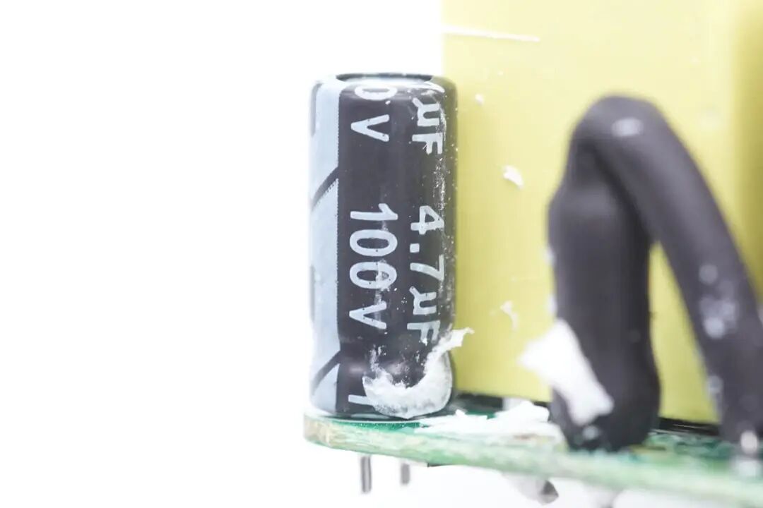 沿充电器插脚侧拆开外壳,交流输入通过导线焊接连接到PCBA模块上,并打胶固定。