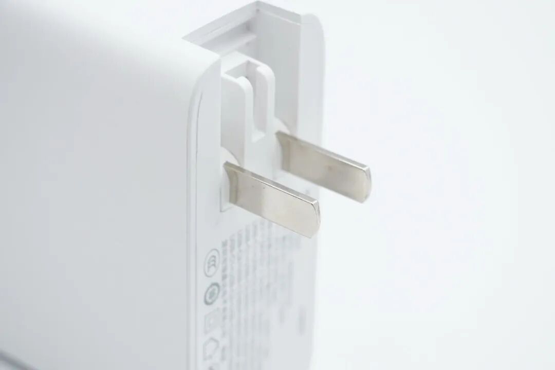 插脚方面,采用折叠插脚设计,差旅出行不会剐蹭行李,且支持替换不同插脚,方便跨国家地区用户使用。