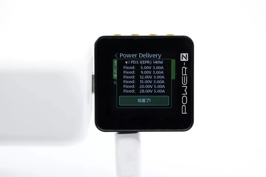 USB-C3 支持5V3A / 9V3A / 12V3A / 15V3A / 20V5A 五个 PD3.0 电压档,还带有 28V5A 这个 PD3.1 新标准的电压规格,最大输出功率高达 140W。