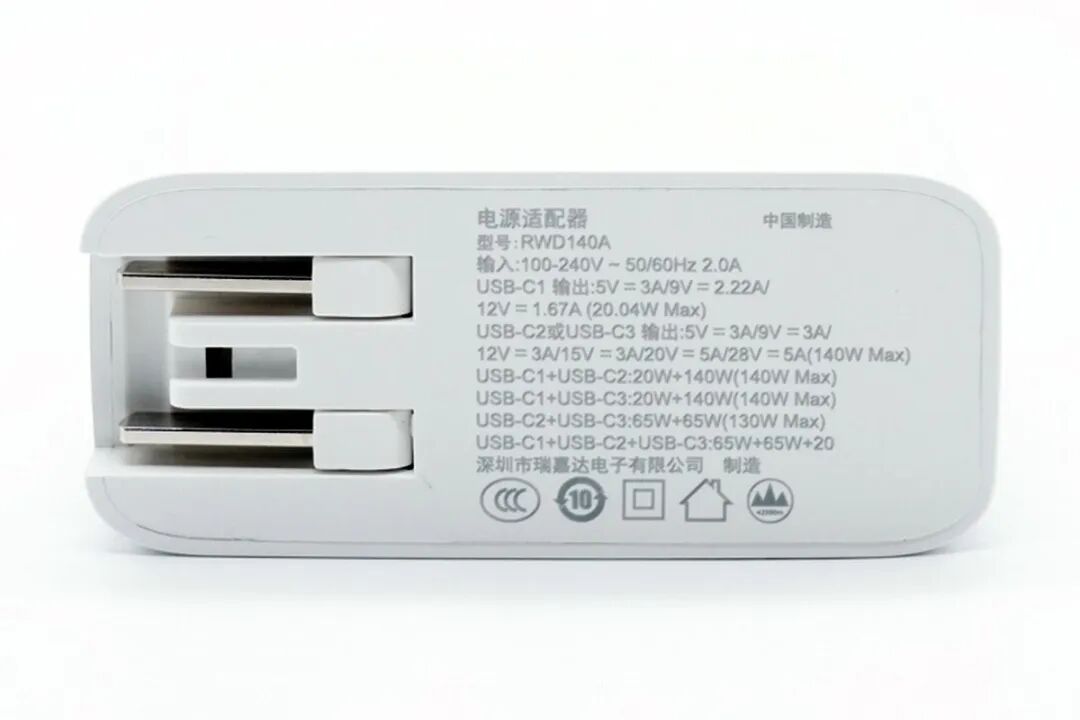 瑞嘉达 140W 三口充电器拥有三个 USB-C 输出口,其中 USB-C1 支持 20W PD 快充输出,USB-C2/C3 支持新一代 PD3.1 快速充电标准,可输出 28V5A 140W,适配 MacBook Pro 16 2021使用。