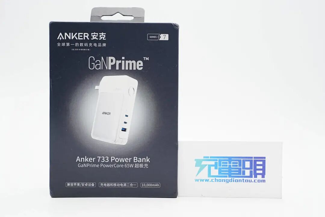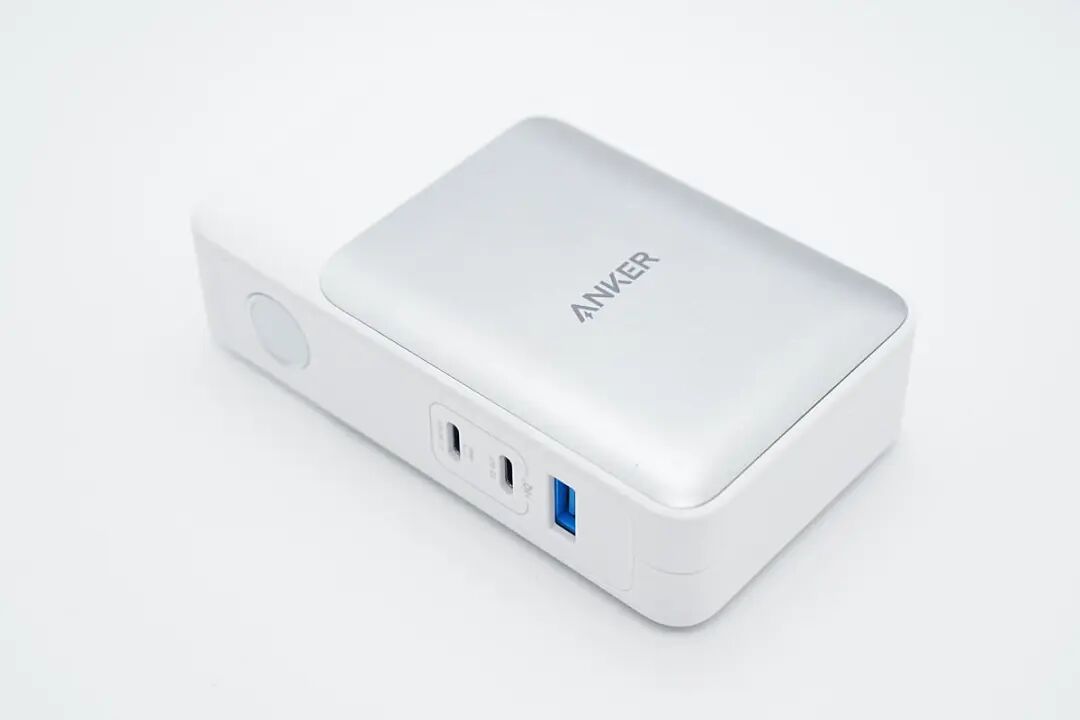 移动电源与充电器二合一的品类,即可以作为移动电源使用,又可以作为充电器使用,外出携带只需携带一个双模充,并且在有电源的场合可以随时充电,无需寻找充电器,使用方便。正因为双模充具有以上优点,对于经常出门的朋友非常适合,只需一个双模充加上数据线,即可满足外出的充电需求。安克最新推出了GaNPrime系列65W超极充移动电源,这款移动电源内置10000mAh电池,在连接交流电源时可作为65W充电器使用,移动电源模式下支持30W输出。2C1A的接口配置支持功率盲插,多个设备同时充电更加从容。下面充电头网就对这款超极充进行拆解,看看内部的设计和用料。包装盒正面印有ANKER品牌、GaNPrime、产品外观、名称,以及兼容苹果/安卓设备、充电器和移动电源二合一、10000mAh三大卖点。侧面印有产品在充电器和移动电源两种模式下的输入输出参数。包装内含安克超极充、数据线、收纳袋以及使用说明书。附带线缆是CC线,属于短线类型,方便用户外带和使用,很符合产品定位。安克65W超极充主体采用PC材质白色外壳,虽是二合一产品,不过和其它新款充电器一样,正背面也都设计有银色装饰板。机身一侧设有移动电源模式下使用的电源键以及2C1A接口,接口均采用安克经典蓝色胶芯。电源键上设有指示灯,可以让用户了解到产品剩余电量。电芯容量:10000mAh(5000mAh*2pcs)锂电池能量:5000mAh 7.4Vdc/37WhAC输入:100-240V~50/60Hz 1.63AUSB-C1输入:5V3A、9V2A、12V1.5AUSB-C1输出:5V3A、9V3A、12V1.5A、15V3A、20V3.25AUSB-C2输出:5V3A、9V3A、15V3A、20V3.25AUSB-A输出:5V3A、9V2A、10V2.25A、12V1.5AUSB-C1输出:5V3A、9V3A、12V1.5A、15V2A、20V1.5AUSB-C2输出:5V3A、9V3A、12V1.5A、15V2A、20V1.5AUSB-A输出:5V3A、9V2A、10V2.25A、12V1.5A超极充配备的是可折叠国标插脚,方便携带且不会刮伤包里其它设备。并且具备5V3A、9V3A、15V2A、20V1.5A四组固定电压档位,以及3.3-11V2.75A一组PPS电压档位。PDO报文也相同,即两个C口单口输出性能相同,支持功率盲插,日常使用更方便。测得USB-A口支持FCP、AFC、QC3.0快充协议。充电器模式下,测得USB-C1口支持FCP、SCP、AFC、QC3.0、PD3.0、PPS、Apple2.4A充电协议。并且具备5V3A、9V3A、15V3A、20V3.25A四组固定电压档位,以及3.3-21V3.25A一组PPS电压档位。测得USB-C2口支持PD3.0、PPS快充协议。同样具备5V3A、9V3A、15V3A、20V3.25A四组固定电压档位,以及3.3-21V3.25A一组PPS电压档位。测得USB-A口支持FCP、SCP、AFC、QC3.0快充协议。