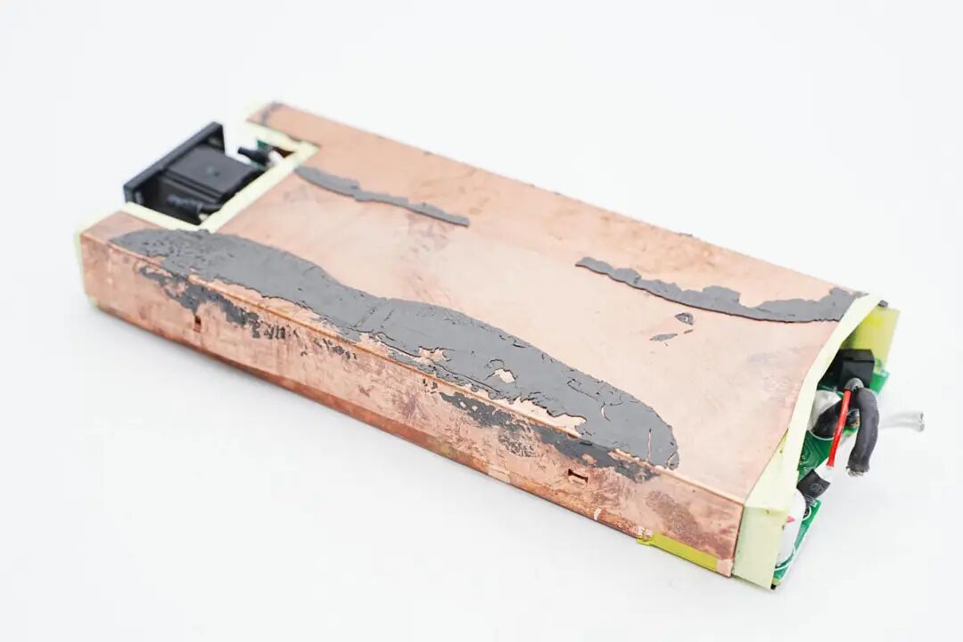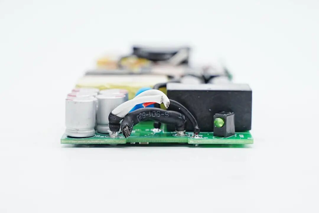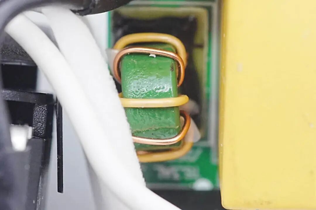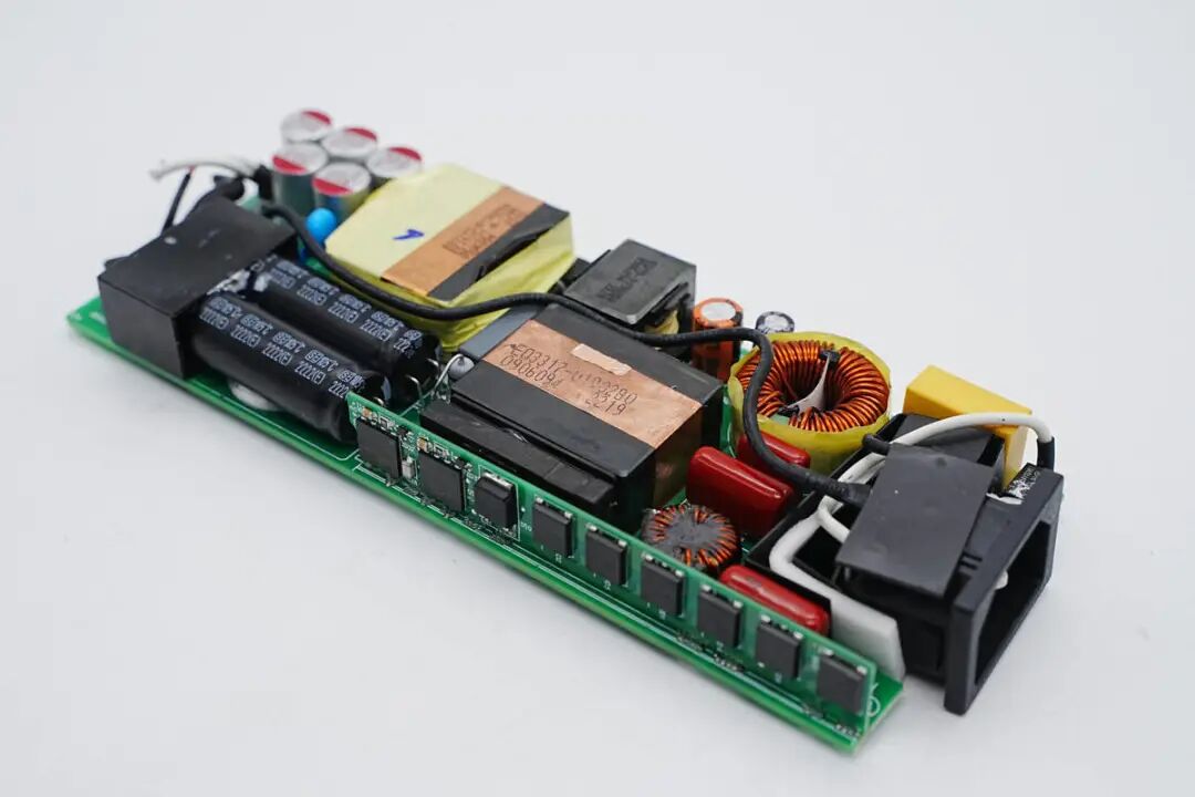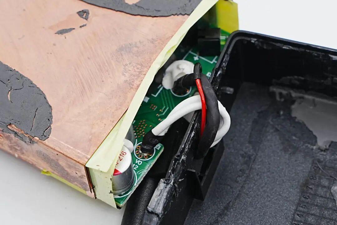 看完了雷蛇这款电源适配器的外观和尺寸测试,下面就进行拆解,看看氮化镓加持的电源适配器内部是如何设计。沿适配器外壳接缝撬开后盖,内部PCBA模块采用纯铜散热片包裹。输出线一览,其中两条白色为正极线芯,黑色为负极,红色细线用于电源功率识别。使用游标卡尺测得PCBA模块长度为156.51mm。拆开PCBA模块上覆盖的散热片,内部PFC升压电感和谐振电感,LLC变压器涂有导热胶,利用散热片散热。在PCBA模块侧面焊接一块小板,小板上焊接整流桥和PFC升压开关管。小板打胶通过纯铜散热片散热。电源适配器PCBA模块正面一览,其中左上角为输出滤波固态电容,在电容右侧是LLC变压器,变压器右侧是谐振电感,在谐振电感下面是PFC升压电感。左下方是高压电解电容。右侧为输入EMI滤波器件,底部小板为输入整流和PFC升压。PCBA模块背面电路相对简单,PCB镂空放置PFC升压电感,降低厚度。在右侧焊接一颗二合一控制器,用于PFC升压和LLC控制。右上方是次级同步整流电路,焊接同步整流控制器和两颗同步整流管。两颗光耦用于输出电压反馈和保护功能。通过对PCBA模块的观察,雷蛇这款电源适配器采用PFC+LLC的高效电源架构,使用一颗控制器同时控制PFC升压和LLC开关电源,固定输出电压为笔记本供电。下面我们就从输入端开始了解各个器件。PCBA模块输入端一览,焊接保险丝,共模电感,安规X2电容。输入端保险丝来自CONQUER功德,MST系列超小型延时保险丝,规格为6.3A 250V,用于输入过流保护。共模电感采用漆包线与绝缘线绕制。底部打胶固定电木板绝缘。电源侧面焊接安规X2电容,共模电感,为主控芯片供电的电解电容,谐振电感,变压器和输出固态电容。第二级共模电感采用磁环绕制,缠绕胶带绝缘,底部粘贴电木板绝缘。PCBA模块侧面焊接小板,小板焊接六颗整流桥和两颗氮化镓器件,以及一颗PFC升压整流管。小板上共焊接六颗整流桥,为半桥连接,均摊发热降低温升。整流桥丝印MB30JL,额定电流3A。整流桥输出的滤波电容来自深圳塑镕,规格为1μF450V。两颗薄膜电容来自深圳塑镕,一颗体积较小的规格为0.47μF450V。两颗PFC升压开关管使用了GaNsystems的两颗GS-065-030-2-L并联,这凸显了GaNsystems的GaN HEMT优秀的可并联性。这是一颗耐压650V,瞬态耐压为850V的增强型氮化镓器件。导阻为50mΩ,采用PDFN8*8封装,支持1MHz以上的超高开关频率。器件在设计时简化了驱动要求,栅极驱动电压为0~6V,瞬态耐压为-20~10V,具有更强的可靠性。器件具备开尔文源极,可用于优化栅极驱动。GaN Systems GS-065-030-2-L 详细资料。由于电源内部的PFC控制器为CCM模式,PFC升压整流管采用一颗碳化硅二极管,利用无反向恢复电流优势,满足CCM模式PFC升压应用。碳化硅二极管来自HOEN富盈,型号为CH3D10065E,是一颗耐压650V的碳化硅二极管,采用TO252封装。在小板背面焊接一颗二极管和磁珠等元件。PCB板为AcePower设计,经查询AcePower是国内老牌电源制造商欧陆通旗下品牌,致力于为高端IT品牌提供定制化电源设计、制造解决方案。PFC升压电感采用EQ3317磁芯,磁芯上缠绕铜箔胶带屏蔽。PCBA镂空放置磁芯,降低整体厚度。两颗高压电解电容来自SUSCON冠坤,规格均为100μF 450V。电源适配器初级主控芯片来自恩智浦,型号为TEA2017AAT,是一款数字化可配置LLC和PFC组合控制器,用于高效谐振电源。芯片包括LLC和PFC控制器功能。PFC经配置可在DCM/QR、CCM固定频率或支持所有操作模式的多模式下运行,优化PFC效率。芯片内部集成高压启动和X电容放电,内部集成驱动器,可直接驱动高压上管,无需外置驱动器。PFC可配置为DCM/QR,DCM/QR/CCM混合模式和CCM固定频率三种运行模式,满足不同功率应用需求。两颗LLC开关管来自东微,型号OSS60R190JF,是一颗耐压650V,导阻为190mΩ的NMOS,属于超级硅产品,具有极低的导通电阻和低栅极电荷,能够降低传导损耗,提升开关性能。两颗为主控芯片供电的电解电容分别为330μF 25V和220μF 25V。LLC谐振电容来自深圳塑镕,规格为0.047μF 630V。变压器采用EQ3313磁芯,对应低压侧使用胶带严密缠绕绝缘。两颗EL1013光耦分别用于输出电压反馈和保护功能。同步整流电路一览,采用两颗同步整流管和一颗同步整流控制器组合用于LLC输出同步整流。次级同步整流控制器采用恩智浦TEA2095T进行同步整流控制,内置两个驱动器,可以同时驱动两个同步整流管,支持LLC应用,并支持独立工作,最高工作频率可达1MHz。芯片支持4.5-38V供电电压,支持逻辑电压驱动的同步整流管。同步整流管来自英飞凌,型号BSC028N06NS,是一颗耐压60V的NMOS,导阻为2.8mΩ,采用SuperSO8封装。电源适配器输出侧一览,焊接固态电容,输出线和指示灯。五颗输出滤波电容,品牌与规格相同,为柏瑞凯RF系列5000小时长寿命固态电容,规格为470μF 25V,用于电源输出滤波。电源次级采用DIODES AP4310E进行输出恒压恒流控制。AP4310E是一颗内置电压基准的双运放,配合取样电阻进行输出电压反馈和输出电流检测。R002取样电阻,采用2512封装,用于输出电流采集。雷蛇这款280W电源适配器,相比传统电源来说,体积显著缩小,体现了氮化镓器件带来的性能提升。电源适配器采用专用插头,配合编织线设计,经久耐用。加入指示灯的设计,可以方便的了解电源的通电状态。充电头网通过拆解了解到,雷蛇这款适配器采用欧陆通为其定制化设计的PFC+LLC架构,内部使用NXP恩智浦TEA2017AAT进行PFC+LLC控制。其中PFC升压开关管采用GaN Systems的GS-065-030