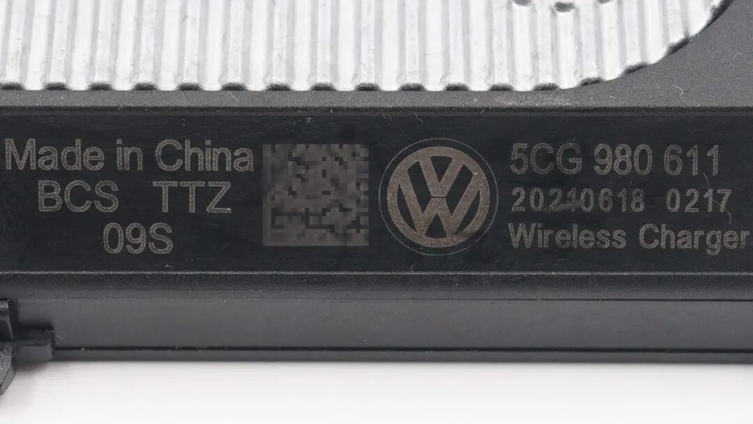 汽车前装无线充对于消费者来说是一种很神秘的存在,通过出厂前安装在汽车内部,为手机提供无线充电功能,并与汽车内饰成为一体,美观实用。正因为预装在车辆内部,很多人并不会注意到它的存在,也就很少了解到这个产品。充电头网拿到了一款大众汽车的前装无线充模块,充电头网下面就对这款车载无线充模块进行拆解,一起来看看内部的设计与用料如何。大众汽车这款车载无线充电器采用塑料加金属材质外壳,整体比一般的手机大一些。底部金属板区域镂空降低厚度,此外金属板做了凹槽设计,增加面积以便更好进行散热。边缘外壳上设计有大众汽车的品牌logo,模块由中国制造。