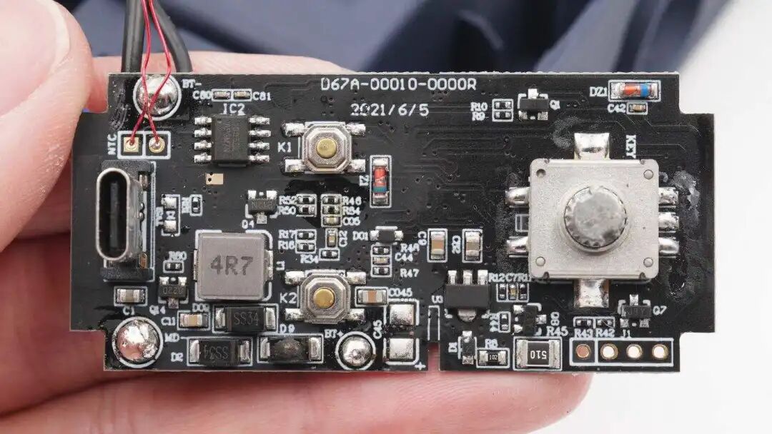 充电头网通过拆解了解到,这款充气宝通过内置锂电池为电机供电,电机带动气泵充气。气泵上设有气压传感器,能时刻监控气压,进行自动控制。充气宝内置九夷锂能的18650电池,由新洁能MOS管进行供电控制,内置芯海科技MCU进行整机控制。电池组配有热敏电阻检测温升,保证使用安全。