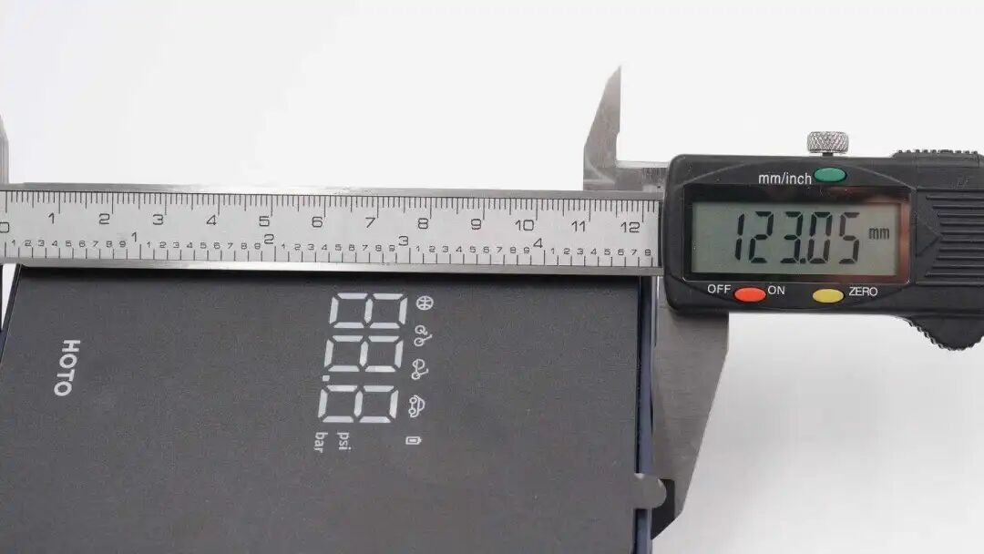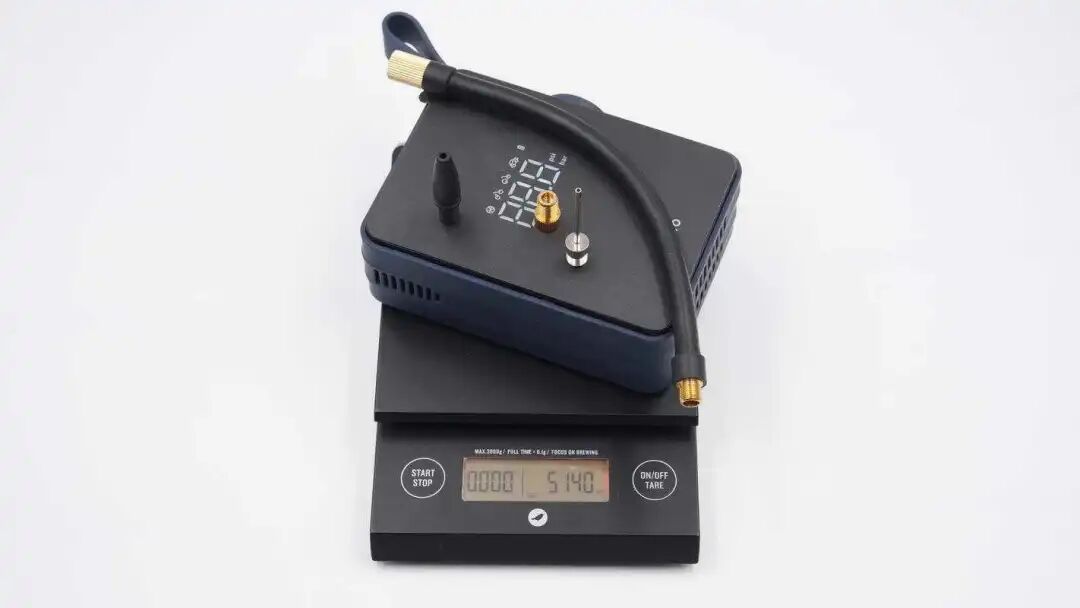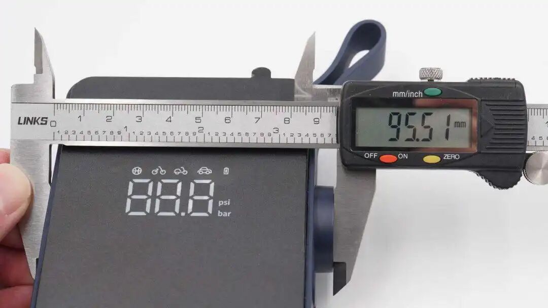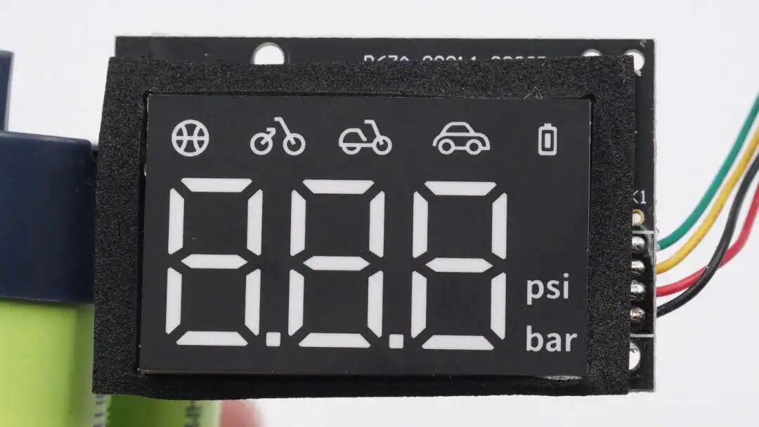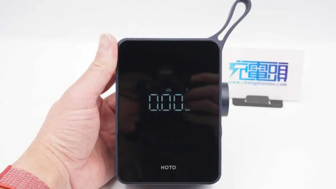 撕掉贴纸可以看到机身正面居中设有 bar/psi 双单位显示屏,让用户对不同使用场景充气状况有很好把控,避免充气过量。