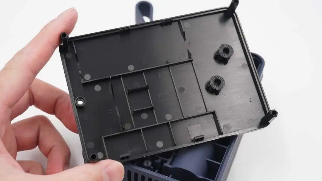 后盖对应内部结构开有加强筋,和对应气泵的固定孔。