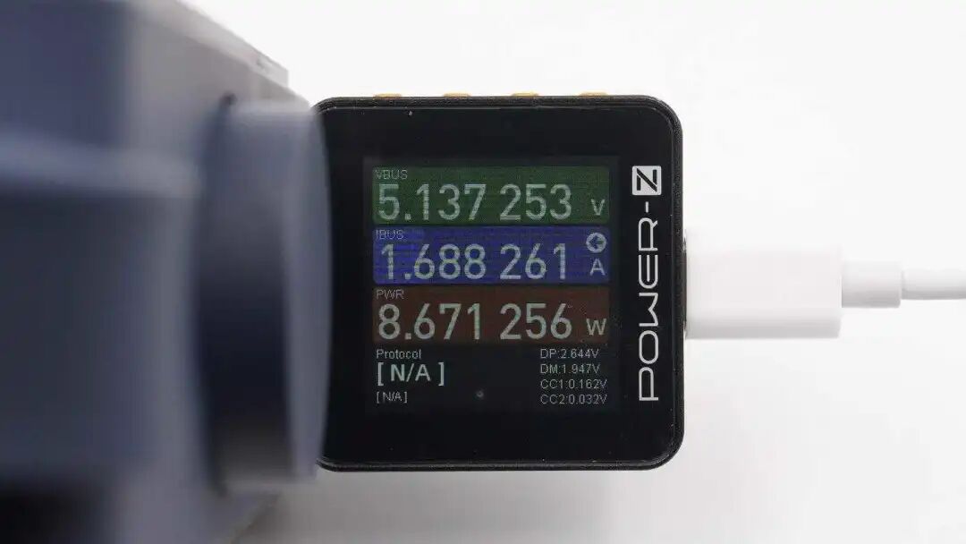 最后给充气宝充电,使用ChargerLAB POWER-Z KT002测得输入功率为5.14V 1.69A 8.67W。