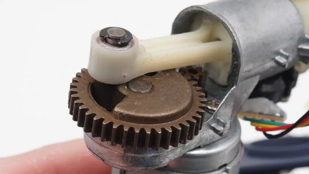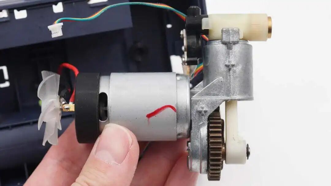 内部气泵机构一览,由马达带动减速齿轮和曲轴带动气泵活塞。