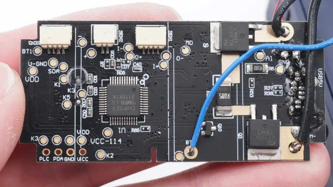 控制电机运转的MOS管,来自新洁能,型号为NCE3095K,是一颗耐压30V的NMOS,导阻为4.1mΩ,采用TO252封装。