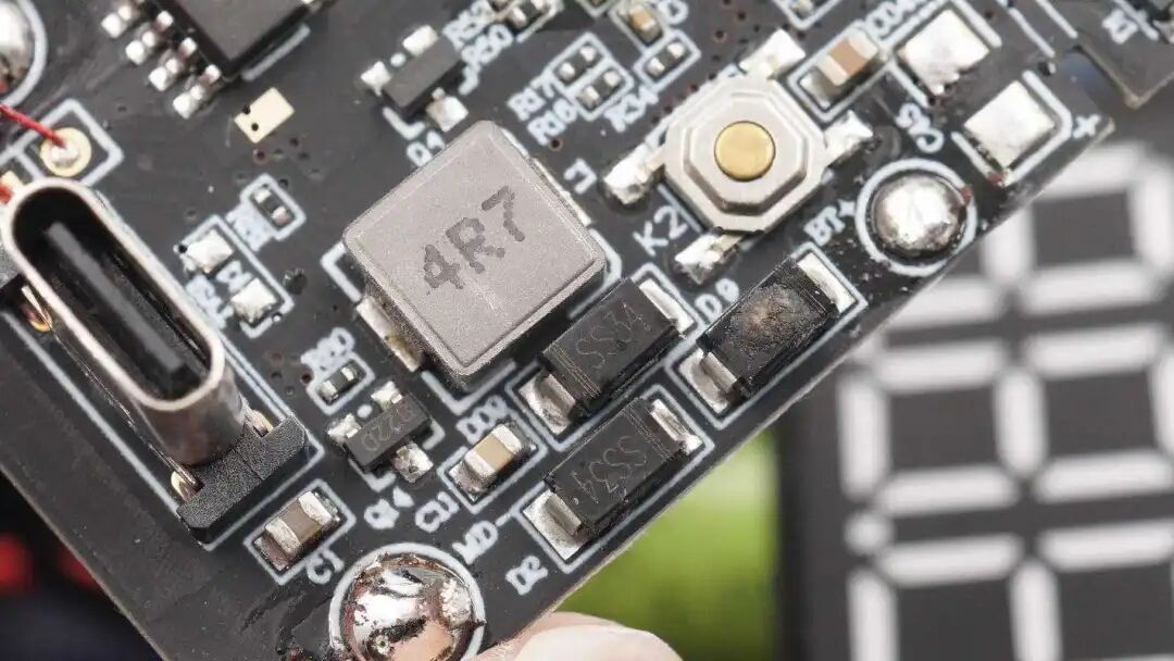 控制板正面焊接USB-C母座,升压电感,按钮和编码器。