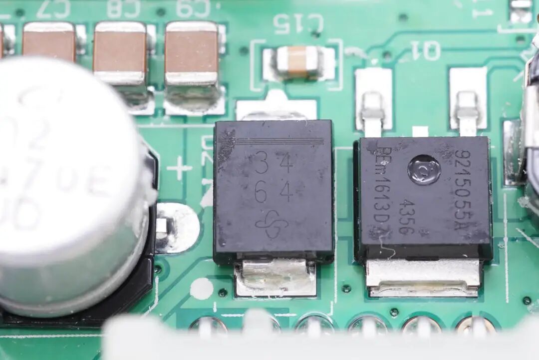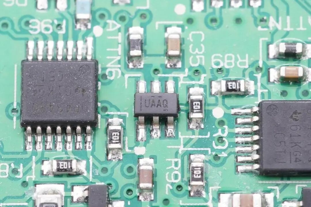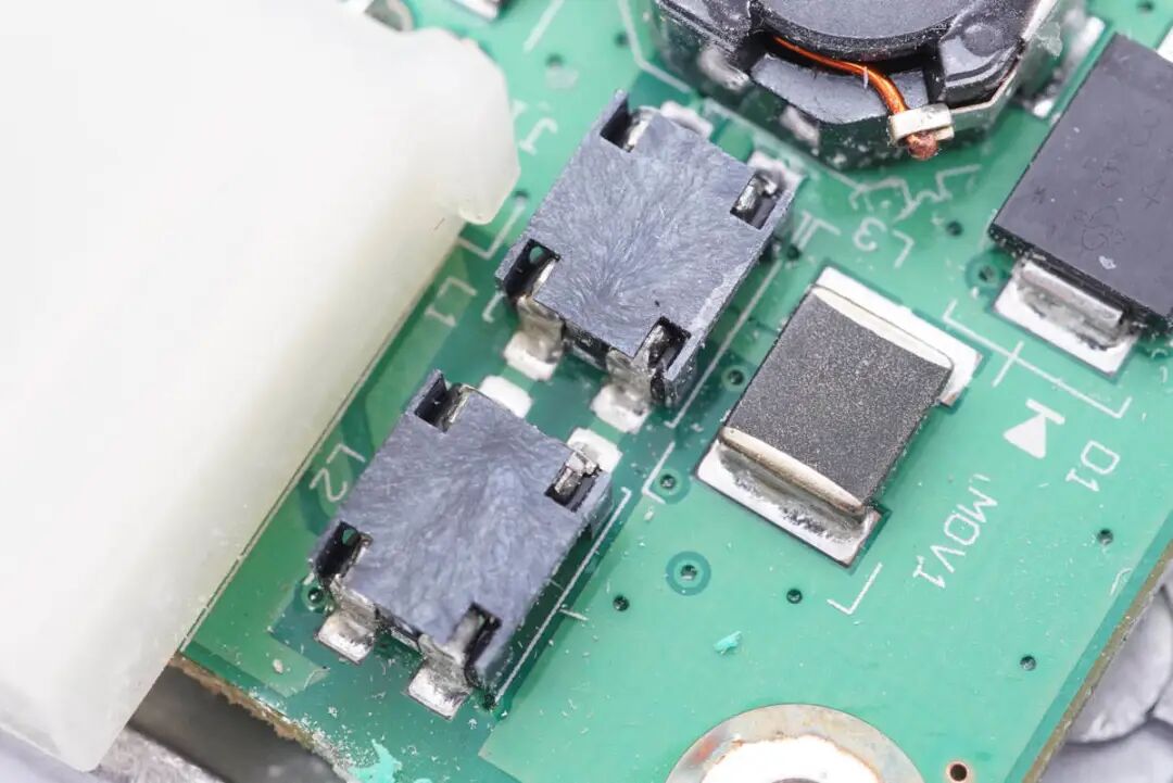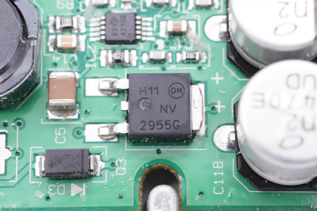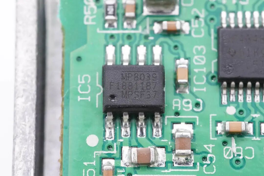看完了伟世通这款无线充电模块的外观展示,下面进入拆解环节,一起看看内部是如何设计的。上盖内部一览,对应无线充电线圈的位置粘贴了一片电容检测贴片,电容检测贴片用于检测手机是否放入,自动开启无线充电功能。在下面的铝合金外壳内部是无线充电线圈和PCBA模块。无线充电线圈的隔磁片粘贴到铝合金外壳内部进行散热。PCBA模块正面一览,左侧焊接电容,电感以及稳压芯片,右侧焊接主控芯片,运放等元件。PCBA模块背面焊接一片金属片,用于与外壳连接接地。PCBA模块正反面均涂有三防漆,起到保护作用。这款无线充电器与主流的充电器不同,其采用了半桥加升压电路的组合,没有采用常见的全桥+升降压结构。一定程度上可以降低成本。下面我们从输入端开始了解这款无线充电器的用料与设计。输入端一颗升压控制器来自TI德州仪器,丝印4210Q,实际型号为TPS40210-Q1,是一颗支持52V输入电压的电流模式升压控制器,用于将输入供电升压为无线充电电路供电。无线充整板共焊接四颗滤波电容,均来自NICHICON尼吉康,规格为470μF 25V,为UUD系列,符合AEC-Q200认证。安森美 NCV4275A 5V450mA LDO,用于为无线充电模块内部的芯片供电。输出滤波电容来自AVX,为汽车用氧化铌电容,满足AEC-Q200要求,失效时为高电阻状态,不燃烧,规格为47μF 6V。一颗MCU来自NXP,型号MC9S08EL32,是一颗8位单片机,内置32K Flash和1K RAM。另一颗单片机来自SILICON芯科,型号位C8051F553,是一颗混合信号单片机,采用QFN24封装,符合AEC-Q100标准。单片机右上角是一颗TI的芯片,丝印ACYU,实际型号为SN74AHC1G86-Q1,是一颗汽车应用的单路二输入异或门,采用SOT23封装。一颗集成MOS来自安森美,型号NCV8402AD,是一颗内置保护的智能分立器件,内部集成过电流,过热和门极保护的ESD以及钳位电路,用于严苛的汽车环境。无线充PCBA上还焊接了三颗TI德州仪器的运放芯片,清理掉上面的胶水,可以看到丝印OP4348Q,实际型号为OPA4348-Q1,是一颗符合AEC-Q100标准的四运放,支持轨对轨输入和输出,用于无线充电解调功能。一颗单刀双掷开关来自TI德州仪器,丝印UAAQ,实际型号为TS5A3159,是一颗模拟开关,用于不同信号输入切换。无线充电功率级采用MPS MPQ8039 高电流半桥驱动器,支持7.5~25V工作电压,支持9A峰值电流输出,支持4.25A连续电流输出,支持1.2MHz开关频率,内部集成电流限制,欠压保护和过热保护,支持半桥和全桥应用,采用SOIC8E封装,底部焊接散热焊盘。安森美 NVD2955是一颗耐压60V的PMOS,导阻为155mΩ,采用DPAK封装。一颗电流传感器芯片来自TI德州仪器,丝印BOG,实际型号为INA193-Q1,用于电流检测放大。伟世通这款无线充电器与主流的充电器不同,常见的无线充均采用了全桥+升降压结构,而这款采用的是半桥加升压电路的组合,线圈中心放置一颗磁铁,与常见的无线充电器有很大不同。充电头网通过拆解了解到,这款无线充内部全部采用车规级元件,采用NXP恩智浦和SILICON芯科MCU进行整机控制,使用TI德州仪器TPS40210-Q1升压芯片将输入电压升压,并使用三颗OPA4348-Q1运放芯片进行解调,使用MPS芯源半导体MPQ8039进行线圈驱动。无线充PCB采用三防漆保护,内部用料十分豪华。![]()