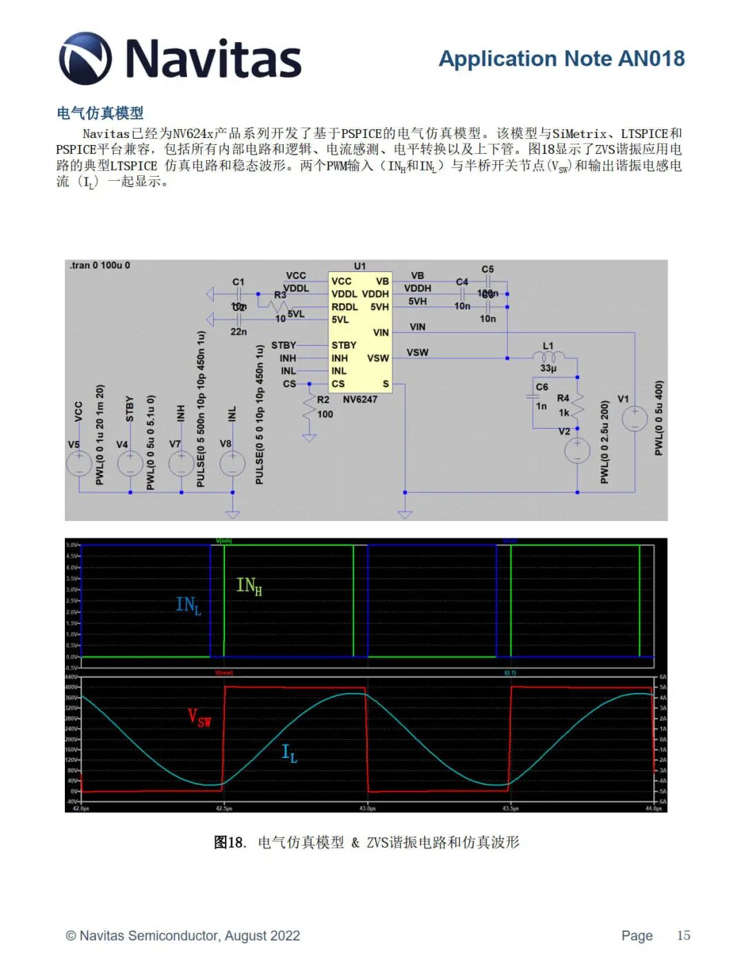 Navitas 纳微已经为 NV624x 产品系列开发了基于 PSPICE 的电气仿真模型。该模型与 SiMetrix、LTSPICE 和 PSPICE 平台兼容,包括所有内部电路和逻辑、电流感测、电平转换以及上下管。