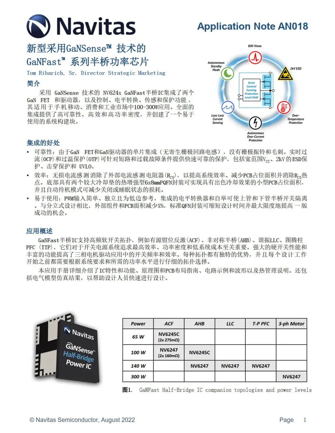 采用 GaNSense 技术的 NV624x GaNFast 半桥 IC 集成了两个 GaN FET 和驱动器,以及控制、电平转换、传感和保护功能 ,其适用于手机移动、消费和工业市场中 100~300W 应用。全面的集成提供了高可靠性、高效和高功率密度,并创建了一个易于使用的系统构建块。