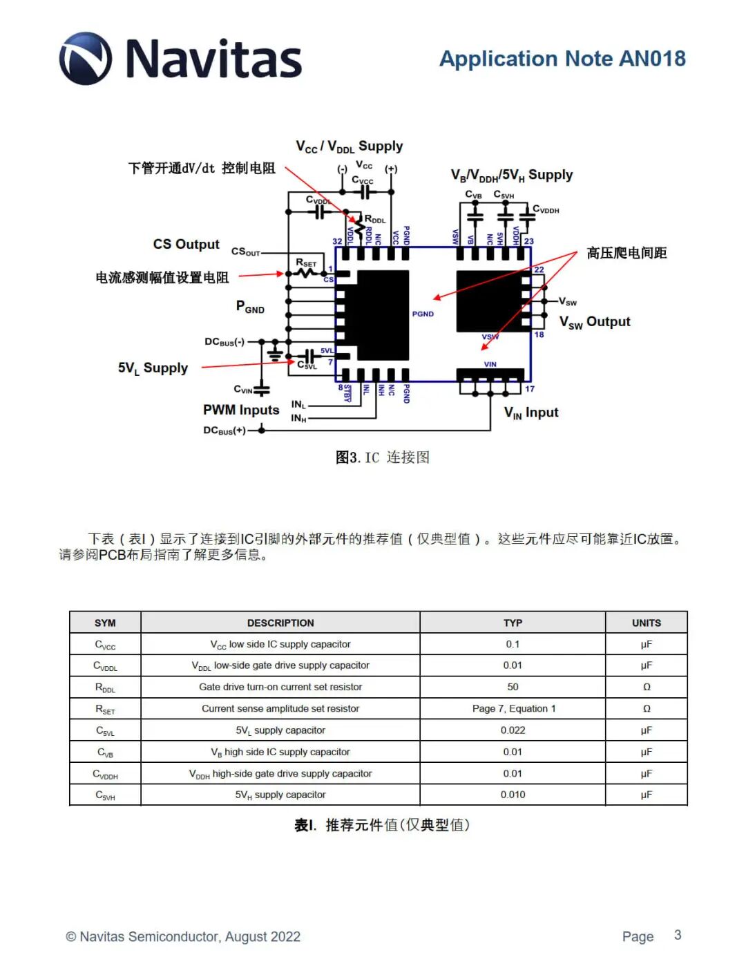 高边I/O引脚包括高边IC电源引脚,低边 I/O 引脚包括 PWM 输入、dV/dt开启控制和电流感测输出。外部电源转换电路的互补开关电流流经两个 GaN 功率 FET 的漏源极。