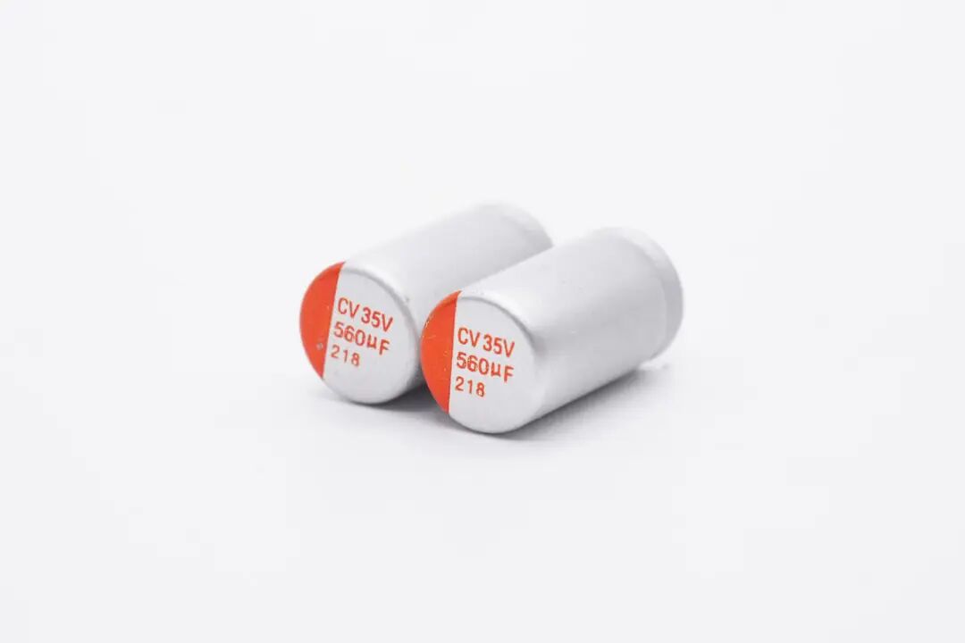 两颗输出滤波固态电容特写,规格都是35V 560μF。