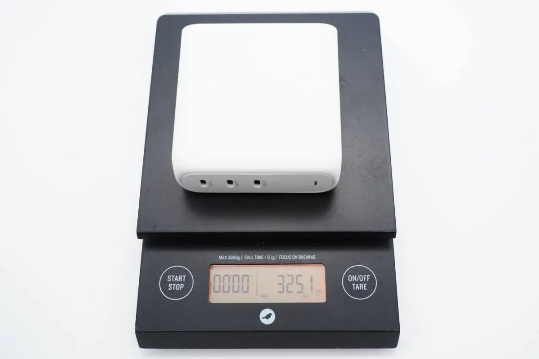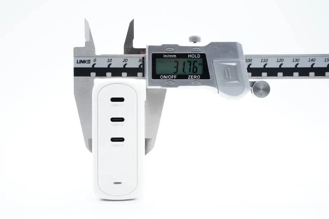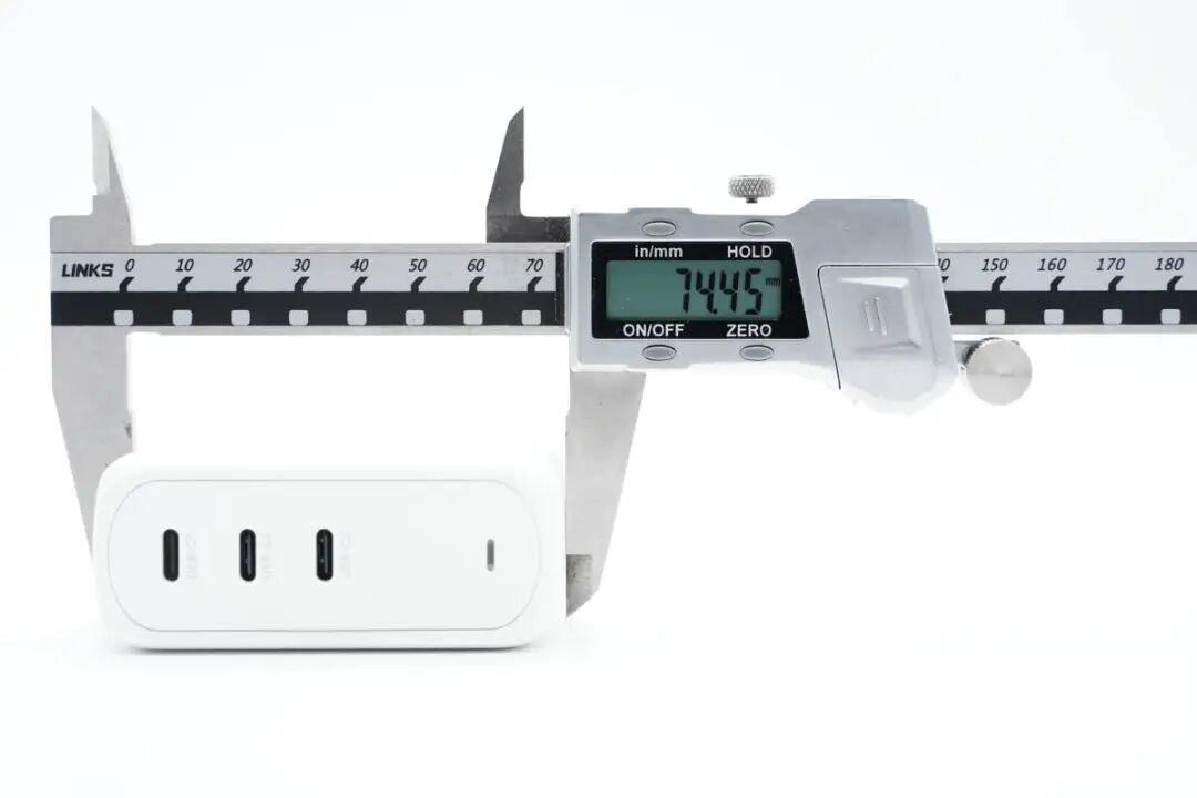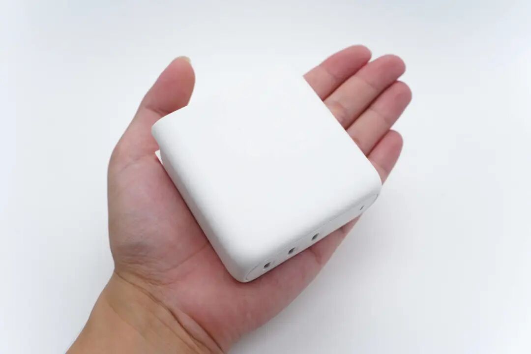 和苹果140W氮化镓快充相比,不仅接口多了两个,而且体积也小不少。