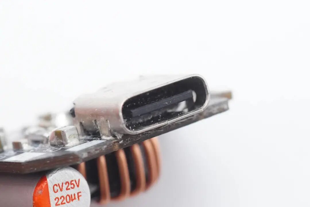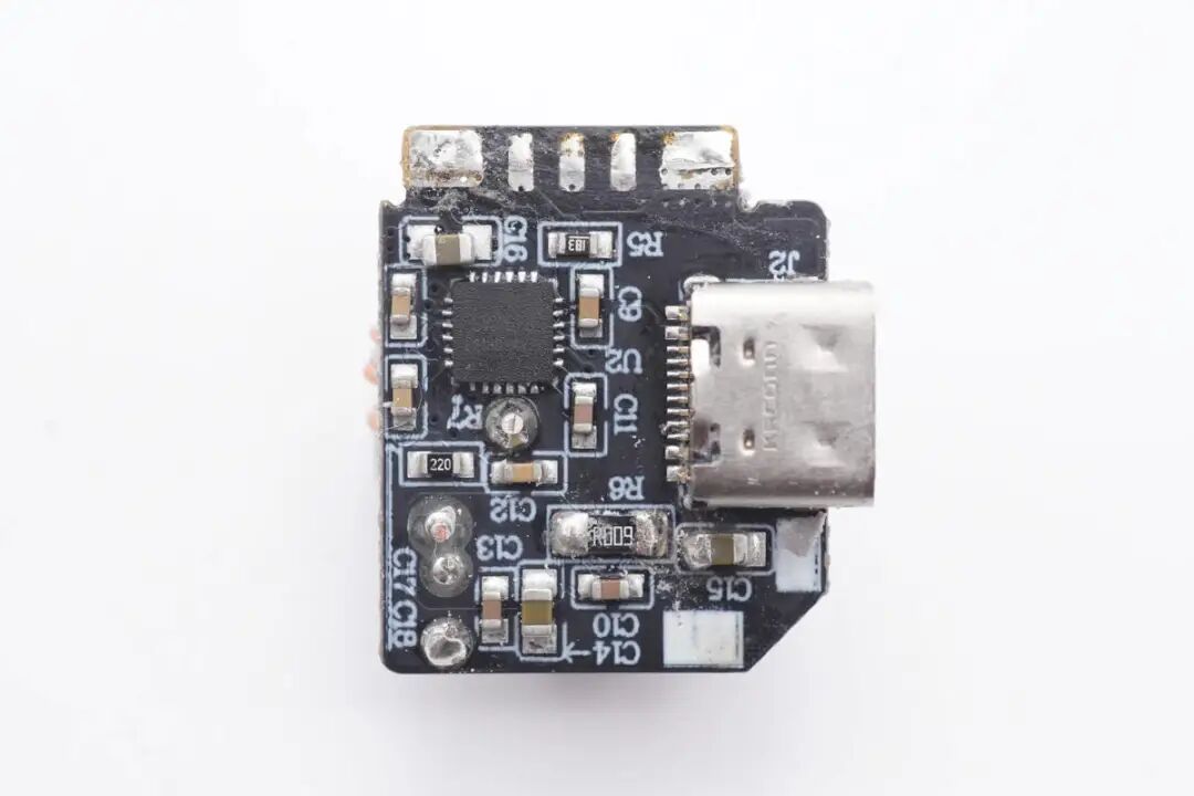 由于USB-C1口输出规格与另外两个接口不同,所以小板为黑色,方便区别和生产。板子正面设有一颗降压协议IC。