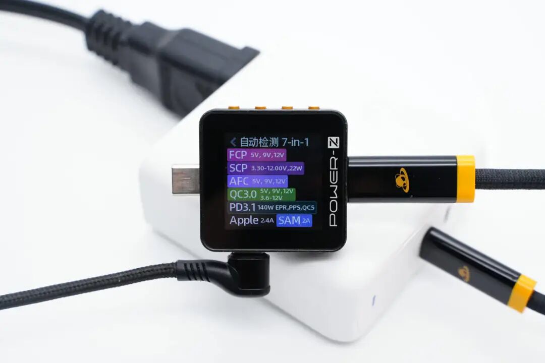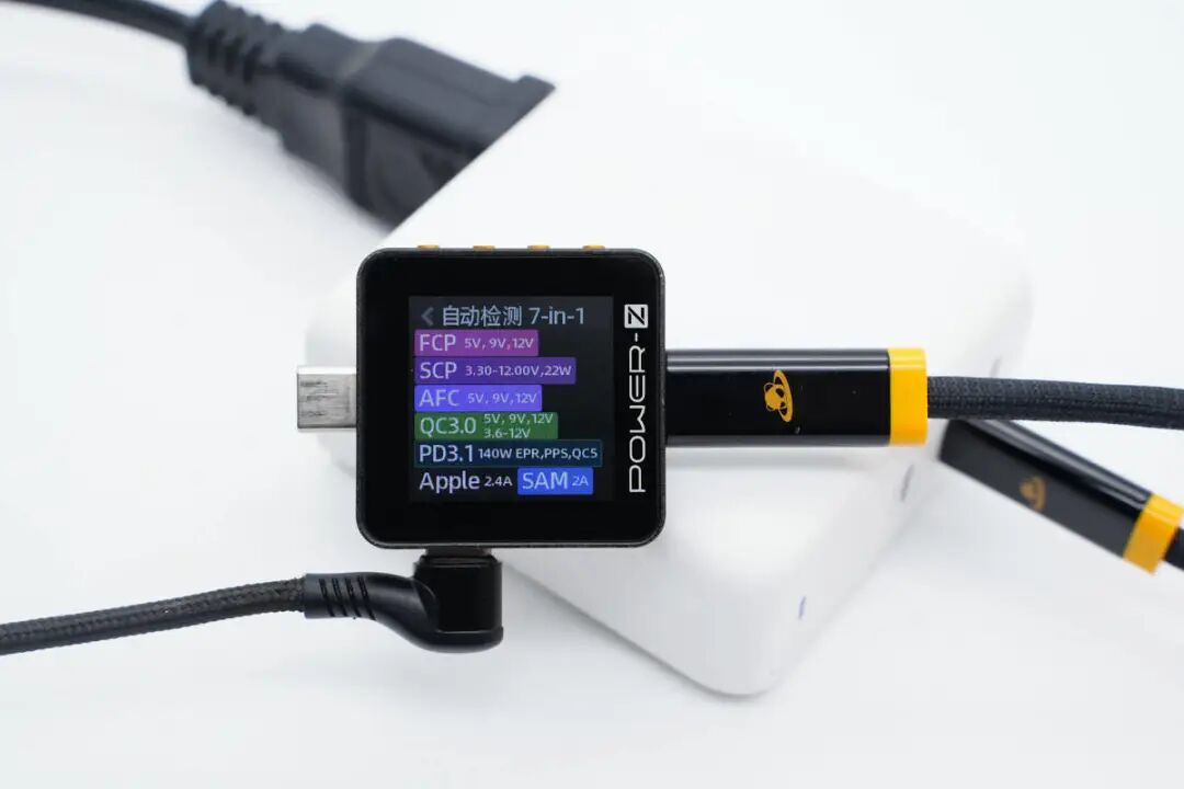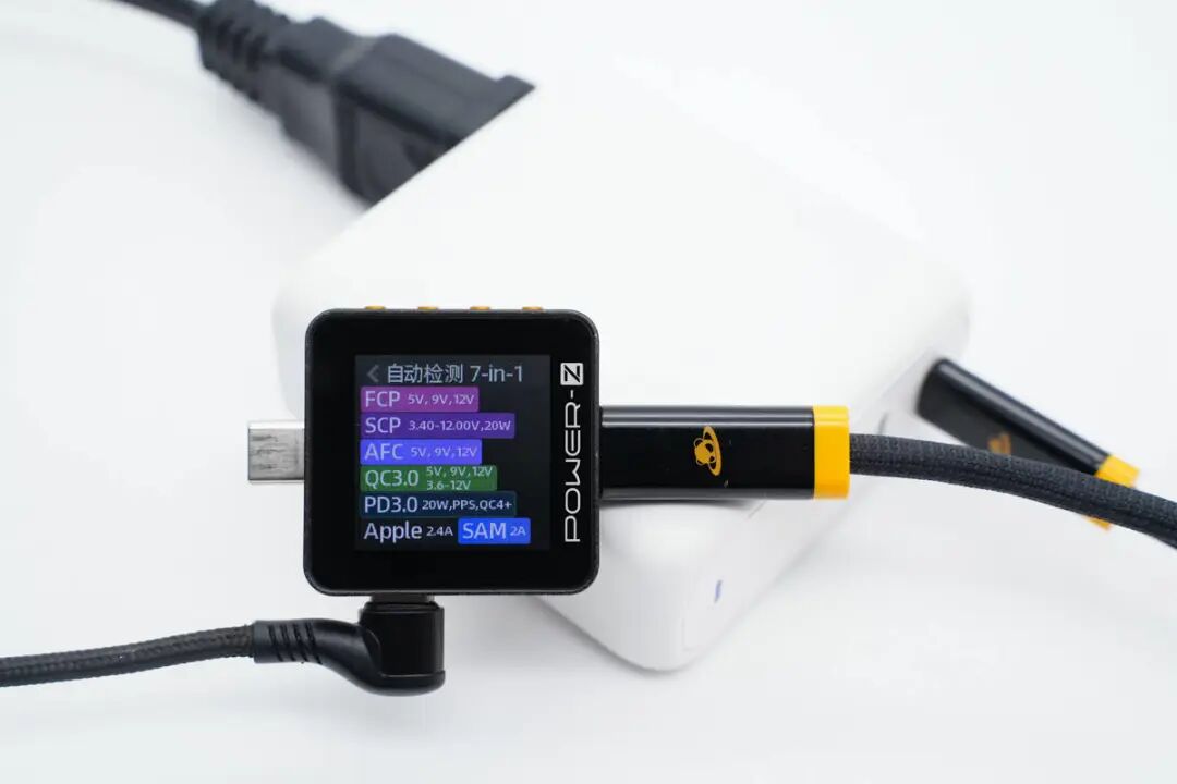 使用ChargerLAB POWER-Z KM002C测得USB-C1口支持FCP、SCP、AFC、QC3.0、PD3.0、PPS、QC4+、Apple 2.4A、Samsung 5V2A充电协议。