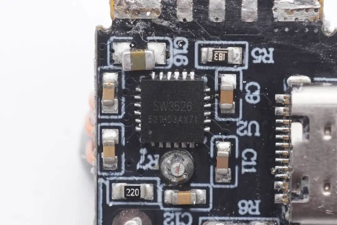降压协议IC采用智融SW3526,其内部集成3.5A高效率同步整流降压转换器,支持PPS、PD、QC、AFC、FCP、SCP、PE、SFCP、低压直充等充电协议,支持CC/CV模式,外部仅需少量器件,即可组成完整的高性能多快充协议充电解决方案。