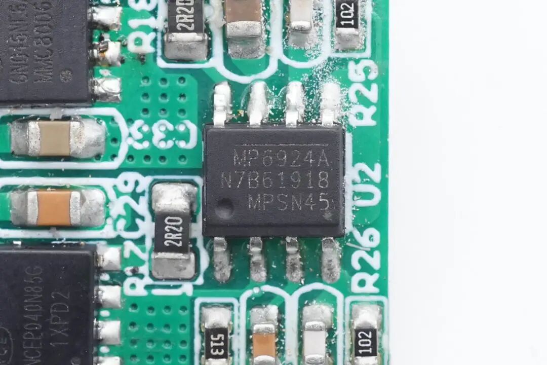 同步整流控制器采用MPS MP6924A,是一颗LLC同步整流控制器,MP6924A内部集成了两个同步整流控制器,分别用于LLC两个次级线圈输出的整流应用,适用于LLC转换器同步整流应用。可以节省一颗控制器,精简次级电路设计,并具有更强的抗干扰度和快速关断功能,可兼容CCM/DCM模式。同时支持4.2-35V宽范围工作电压,可以适用于USB PD3.1快充140W电源设计。