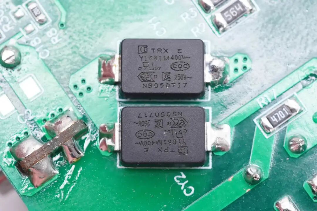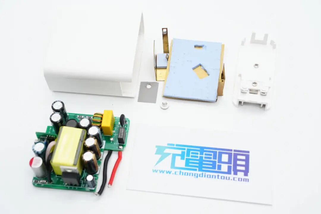 最近充电头网拿到了一款基于能华CE65H160TOAI氮化镓功率器件的65W笔电适配器方案样品,该方案是为配合工信部国产替代政策而设计。该方案采用奶白色的外壳,方形,给人简约时尚感觉;其内部采用卡扣散热设计方案,装配紧凑牢固、安装方式简单,免除其它散热方案所需要的生产夹具,降低生产成本,利于规模化的生产制造;再加上能华的低热阻封装TO-220的CoreGaN产品,使得系统的热可靠性大为提高,已经通过了环温40°下的严苛可靠性测试。下面就随小编来详细了解该方案。基于能华CE65H160TOAI器件设计的这款65W快充充电器采用经典直板机身,PC阻燃材质白色外壳,腰身高光亮面处理。并且具备5V3A、9V3A、12V3A、15V3A、20V3.25A五组固定电压档位,以及3.3-11V3A一组PPS电压档位。PCBA模块正反面均覆盖导热垫及黄铜散热片,虽仅仅是样品,能华也已解决发热、EMI等问题,客户需要的话完全可以基于该方案进行快速量产上市,省时省心。内部采用卡扣散热设计方案,装配紧凑牢固、安装方式简单,利于规模化的生产制造。初级高压CoreGaN管背面贴有导热绝缘垫以便于电气绝缘且更好地散热。PCBA板正面一览,输入端设有延时保险丝、NTC浪涌抑制电阻、安规电容以及共模电感等器件,采用高压电解电容进行初级侧滤波,采用电解电容以及固态电容进行初级侧同步整流输出滤波,USB-C母座焊接在小板上。主板背面一览,采用两个整流桥进行整流以及均摊发热,光耦、两颗贴片Y电容横跨初次级,下方可以看到开关电源主控芯片、同步整流控制器以及同步整流管。延时保险丝特写,规格为3.15A 250V,用于输入过流保护。安规X电容来自WEIDY维迪,规格为0.22μF。模块一侧可以看到工字电感以及另外四颗黑色高压滤波电解电容。两颗黑色高压滤波电解电容来自TOPAZCON黄宝石,规格都是400V 22μF。另外两颗也是来自黄宝石,规格也是400V 22μF。另一侧设有主控芯片供电电容、初级开关管以及变压器。主控芯片供电电容来自黄宝石,规格为100V 4.7μF。初级主控芯片采用茂睿芯MK2697G,是一颗采用SOT23-6极小封装的高频QR AC-DC PWM控制芯片,Vcc耐压110V,支持9-90V Vcc供电,无需外部稳压电路,减小布板空间,使用更灵活。采用专利驱动技术,支持直驱增强型GaN功率器件,同时优化SR Vds应力,有效提高了产品效率及功率密度。茂睿芯MK2697G具有自适应多模式特性,满足PD快充不同输出电压下的能效要求,200KHz工作频率可以充分利用氮化镓开关管优势,提高效率并减小适配器体积。茂睿芯MK2697G具有输出过压、过功率、VCC过压、输入过压保护、同步整流管短路保护等保护功能,适用于USB PD充电器和高功率密度电源应用。初级开关管采用能华 CE65H160TOAI 氮化镓器件,这颗Cascode型CoreGaN器件采用能华耗尽型工艺技术,耐压650V,瞬态耐压900V,导通内阻160mOhm,极低的门极电荷,使得器件的开关速度快,损耗低,可以大大提高系统能效。另外其驱动电压范围±20V,大大提高了系统可靠性,并且和传统的Si MOSFET驱动兼容;这颗器件采用 TO-220 封装,成本低,热容大而且热阻小,这种封装可以拓展器件的功率应用范围,有很强的散热能力和耐热冲击能力,使系统具有更高的热可靠性。江苏能华微电子科技发展有限公司创办于2010年,是一家专业设计、生产和销售以氮化镓(GaN)为代表化合物半导体高性能晶圆、器件的高新技术企业。公司核心技术团队由海外归国人才带领,成员包括从外延生长、器件设计、工艺制程到封装测试各环节的专家。目前公司的产品线涵盖氮化镓外延片、氮化镓功率场效应管、氮化镓集成功率器件以及氮化镓芯片代工等。公司产品技术参数在行业中处于领先地位,各类产品已实现规模化生产,并拥有一批国内外知名客户。两颗贴片Y电容来自四川特锐祥科技股份有限公司,具有体积小、重量轻等特色,非常适合应用于氮化镓快充这类高密度电源产品中。料号为TMY1681M。特锐祥专注于被动元器件的研发、生产及销售,注册资本1亿元。旗下有自主电容品牌两类:SMD TRX及DIP TY电容器,TRX将致力于陶瓷材料的研究,以拓展更多品类的应用,为客户提供更多的解决方案。输出端一览,USB-C母座焊接在协议小板上,右侧是输出滤波固态电容以及输出滤波电解电容。同步整流管采用力宏微LH062N100,是一颗耐压100V的NMOS,导阻6.2mΩ,采用DFN5*6封装。输出滤波固态电容特写,规格为25V 1000μF。另一颗输出滤波电解电容规格也是25V 1000μF。协议芯片以及输出VBUS开关管焊接在输出端小板上,协议芯片丝印CV653,可以看出是一微的协议IC。输出VBUS开关管来自力宏微,型号LH30N03,是一颗耐压30V的NMOS,导阻9mΩ,采用DFN3*3封装。能华推出的高可靠性65W氮化镓笔电适配器方案十分简洁,卡扣散热设计方案加上低热阻封装TO220的能华CoreGaN产品方案,可以大大提高笔电适配器的热可靠性;系统设计特点便于规模化生产,可节约系统成本为产品带来有竞争性的优势。
