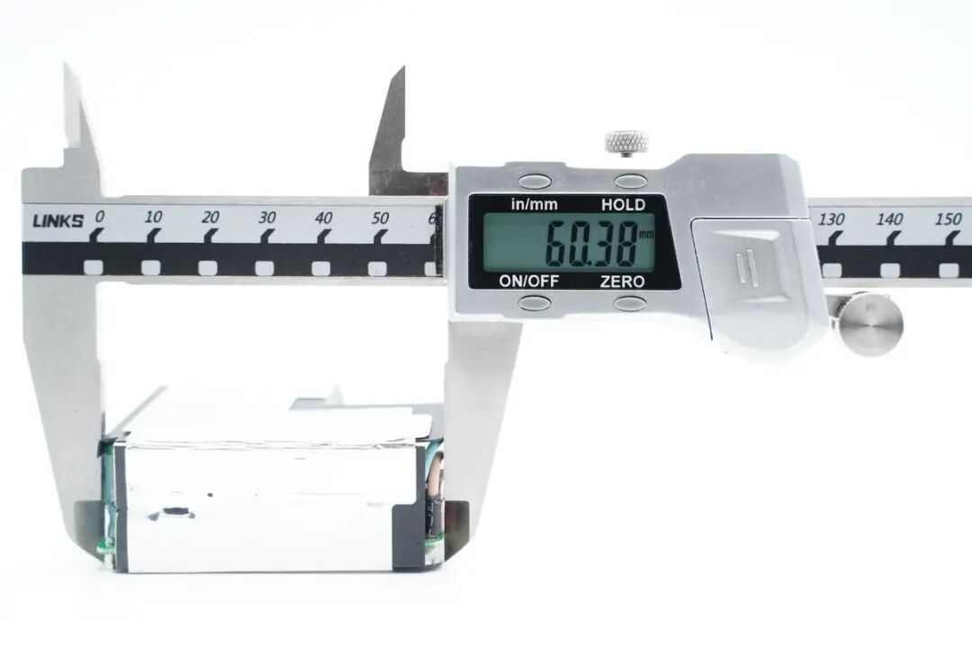 使用游标卡尺测得PCBA模块长度约为60.38mm。