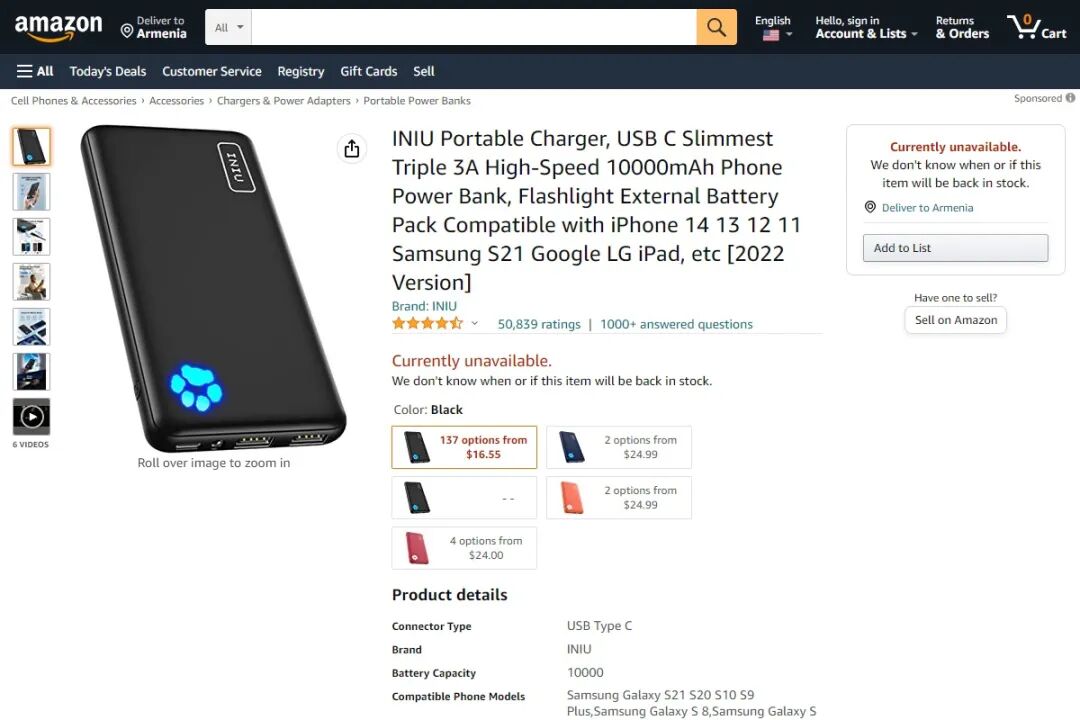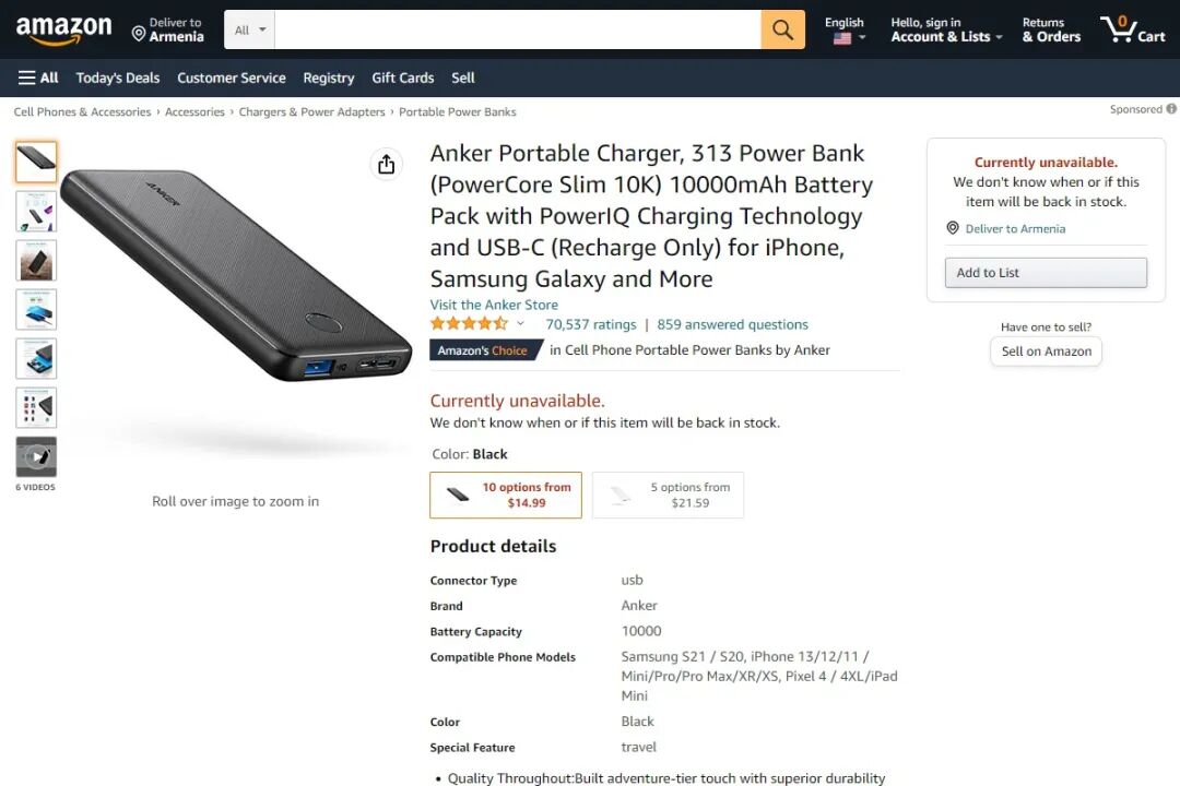 随着人们对手机等数码设备的依赖性日益加剧,现今充电宝与数码设备已是强捆绑关系,充电宝已成为出门必带 EDC 物品之一。不同国家地区的消费者对快充配件的喜好都有说区别,美国用户对充电宝的喜好又是怎样?充电头网在亚马逊畅销类目中按照顺序整理出十款充电宝,统计日期为 2022 年 10 月 10 日,其中产品价格、容量、评分、评论数均以当时的数据为准。