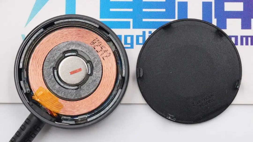 首先撬下正面盖板,在盖板内部是无线充电线圈和吸附手表的磁铁。