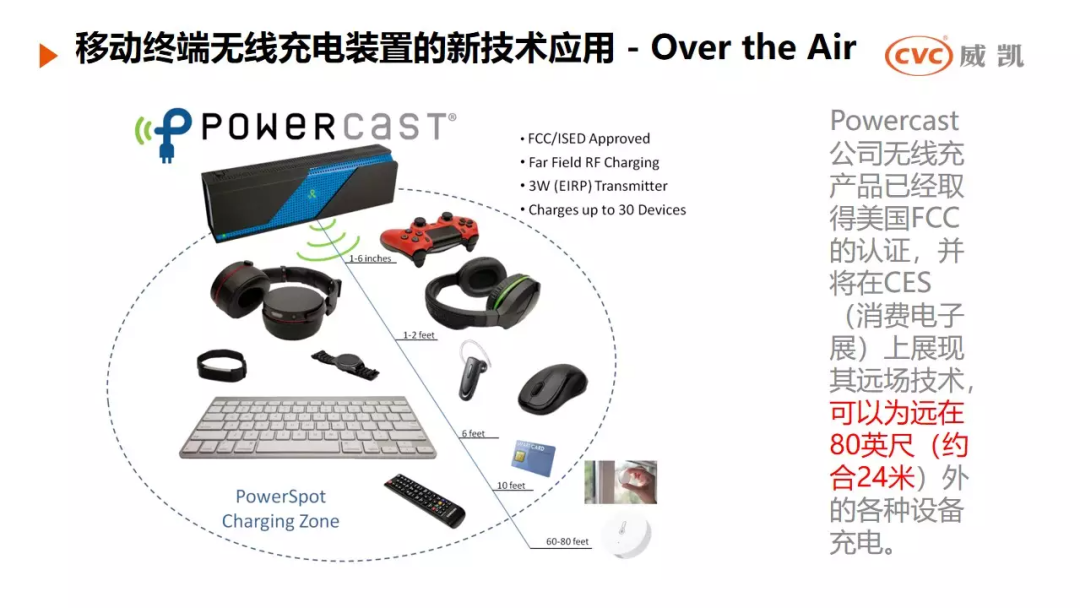 目前Powercast公司的这一无线充产品已经取得美国FCC认证,并将在CES上展现其远场技术,可以为远在80英尺(约24米)外的各种设备充电。