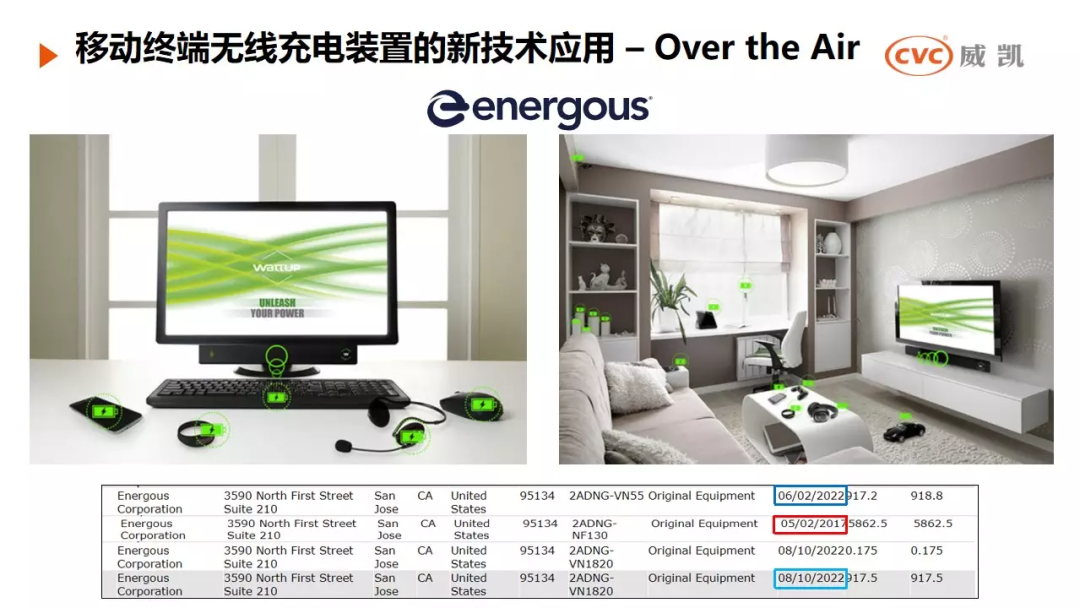 董三碧先生演讲分威凯公司介绍、移动终端无线充电装置的新技术应用以及质量挑战三部分进行。
